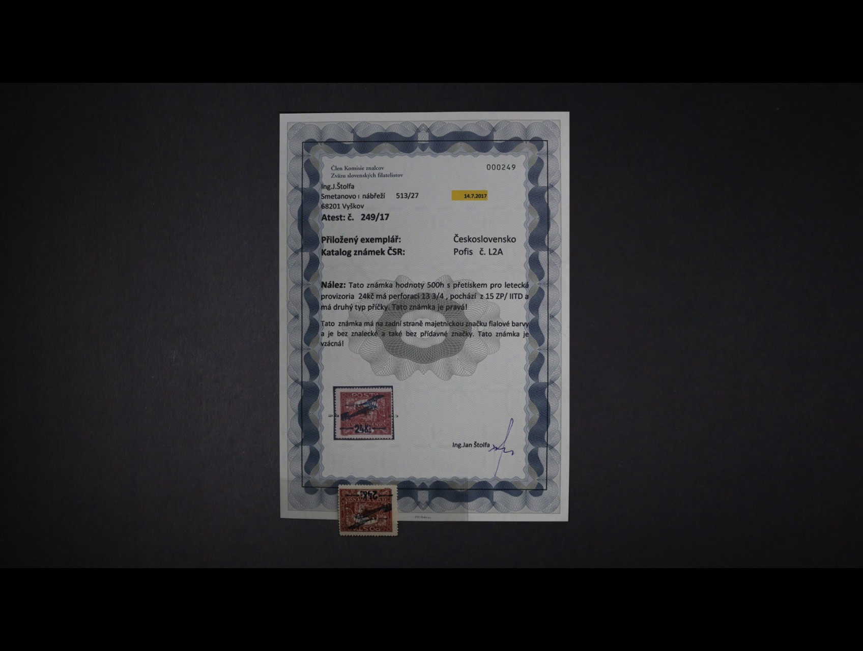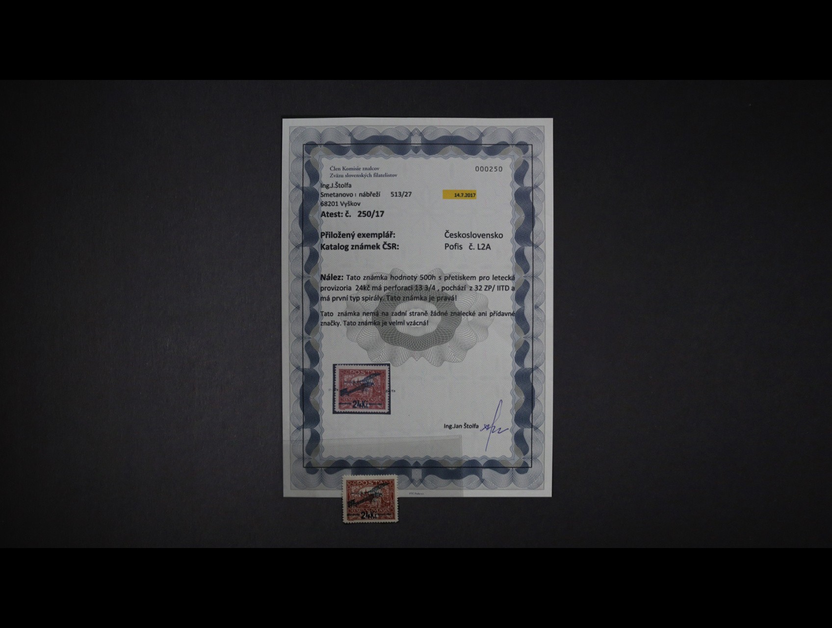 zn. L č. 2, II. příčkový typ, ZP 2, TD II, dvl., atest Štolfa, kat. cena 50000 Kč