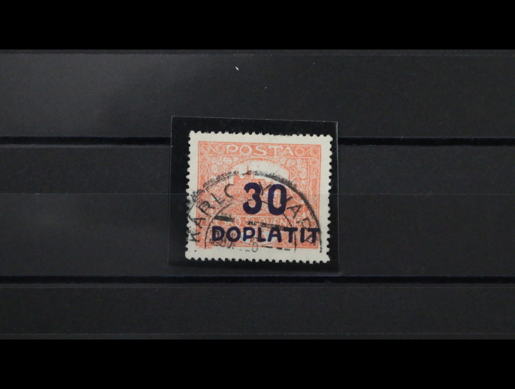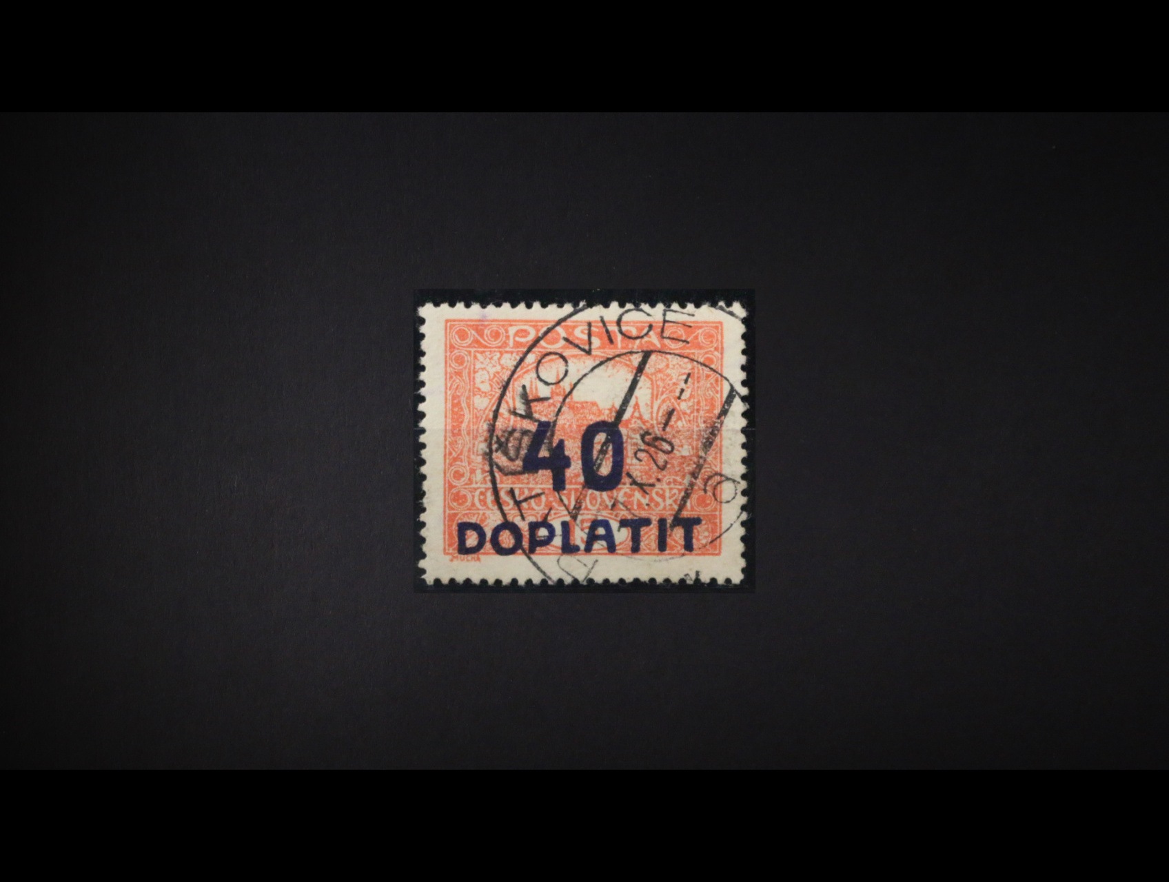 doplatní podatka dofrank. zn. DL č. 2, DL 4 a půlenou zn. DL 1, pod. raz. POLE U JEMNICE 16.2.22, uprostřed svisle přeložená, velmi zajímavé, vzácné