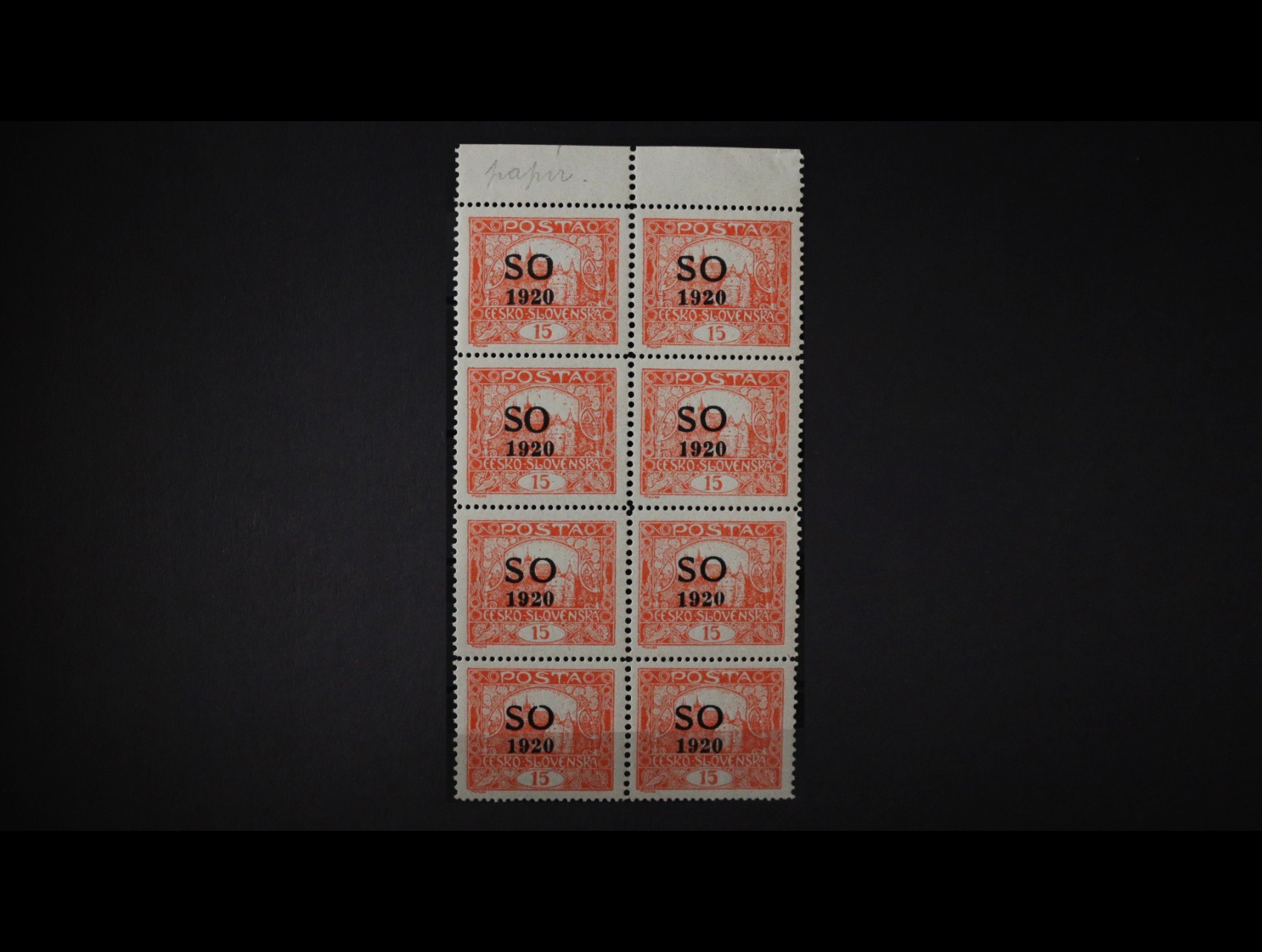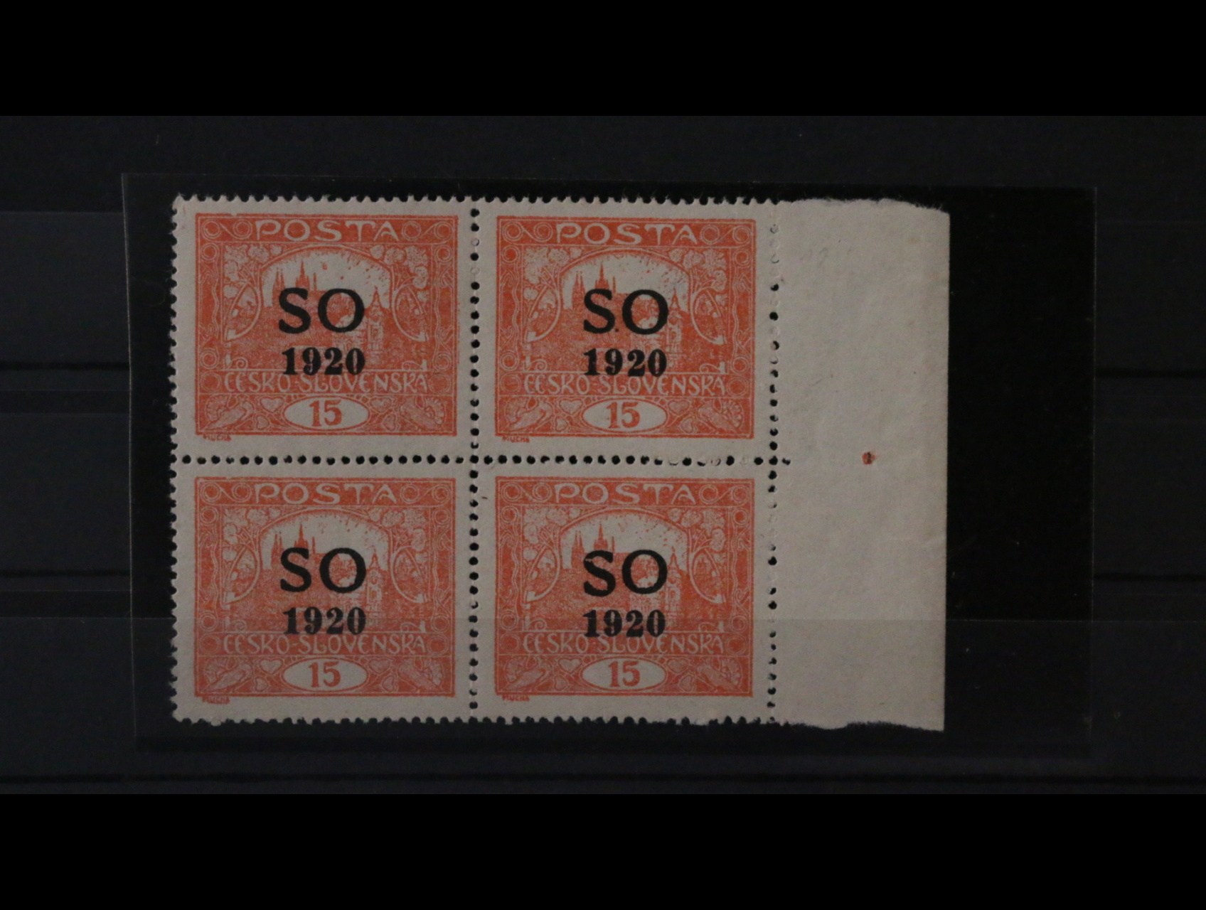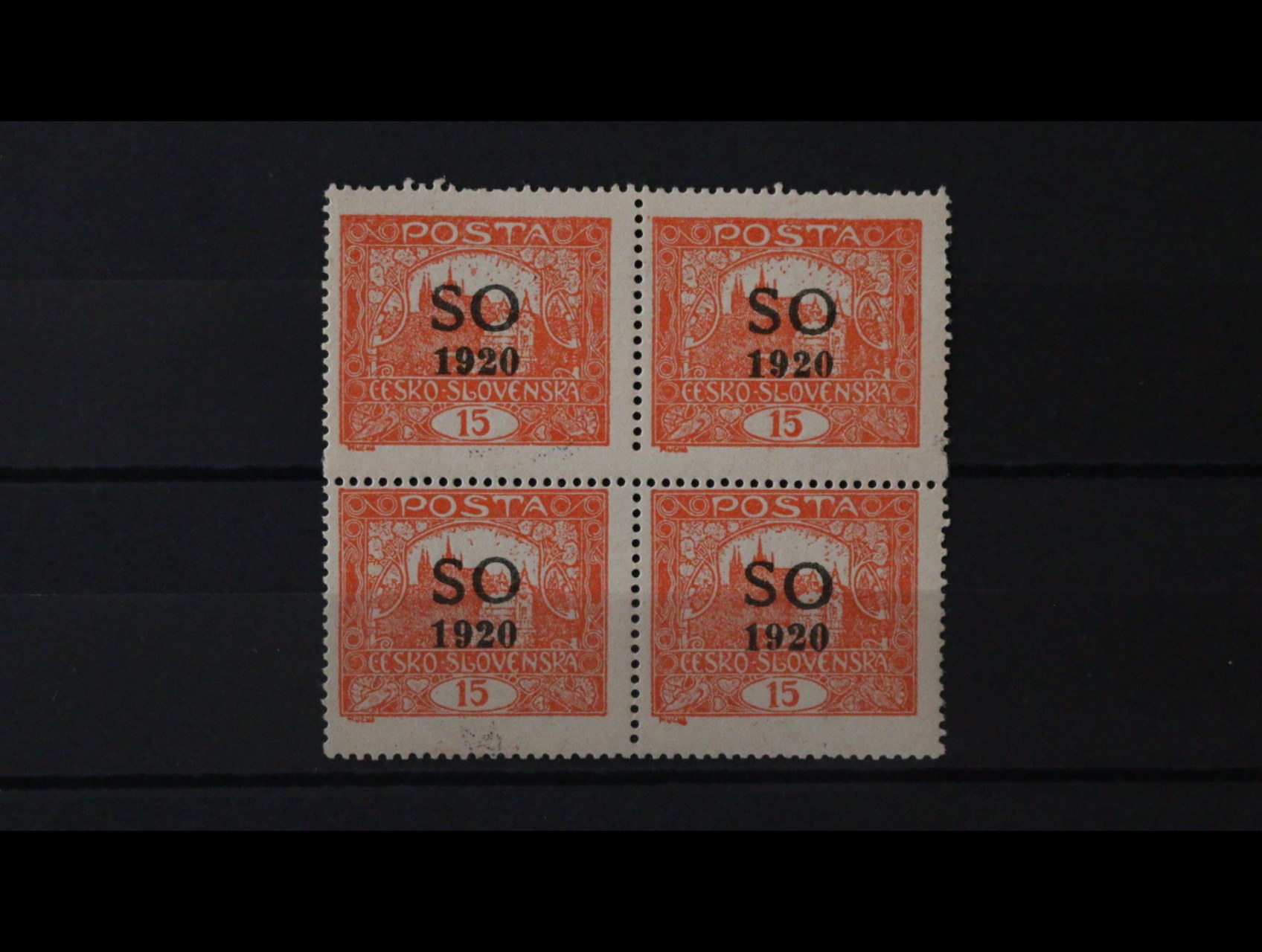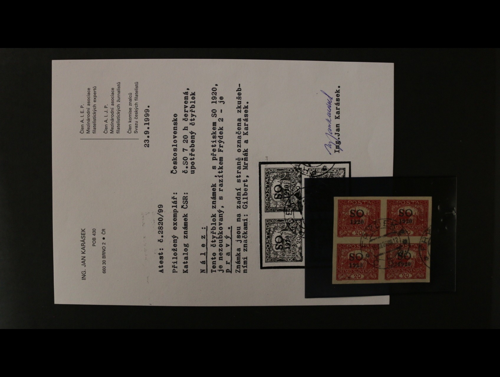 zn. SO č. 7 ve čtyřbloku s kompl. raz. FRÝDEK 10.12.20, zk. Gilbert, Mrňák, Karásek, atest Karásek, kat. cena 40000 Kč