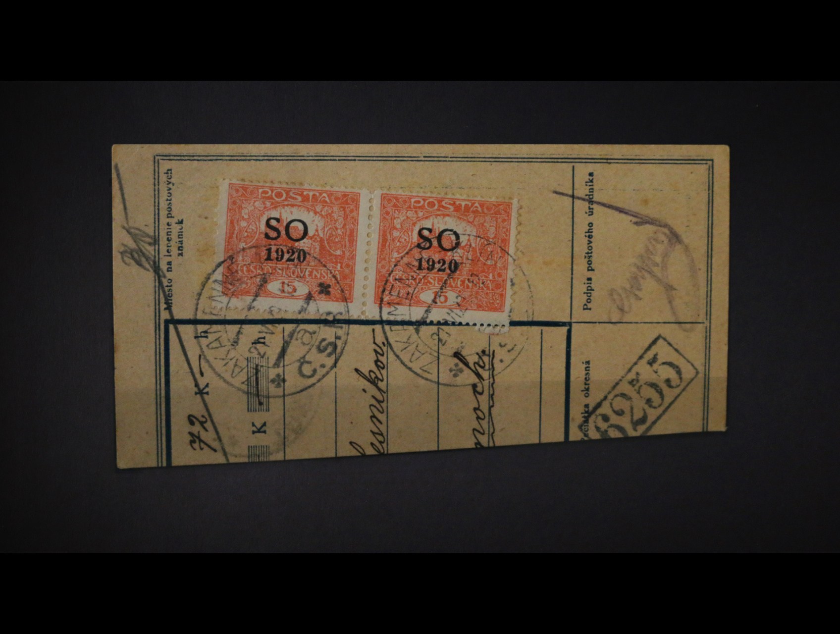 ústřižek pošt. průvodky frank vodorovnou dvoupáskou zn. SO č. 5 D s pod. raz. ZAKAMENNÉ - KLÍN 21.6.20, zajímavé