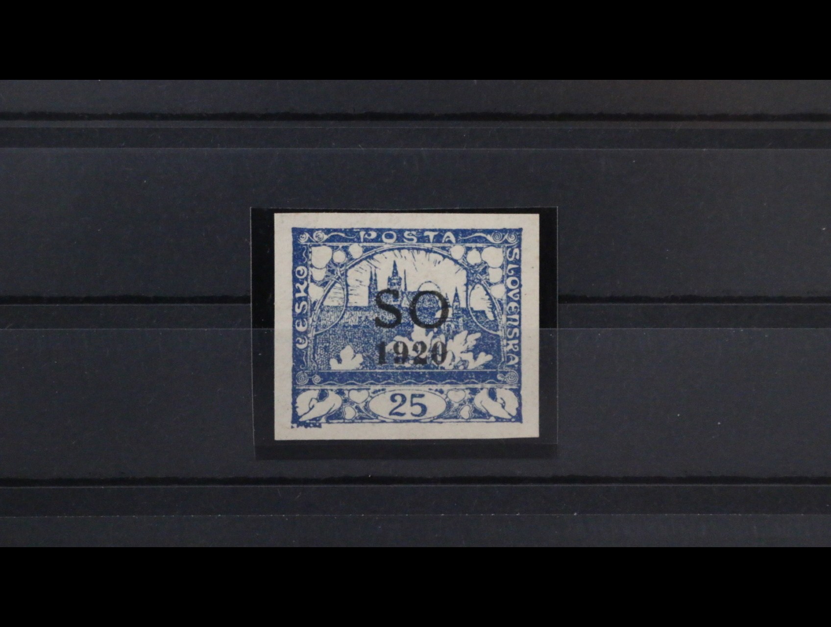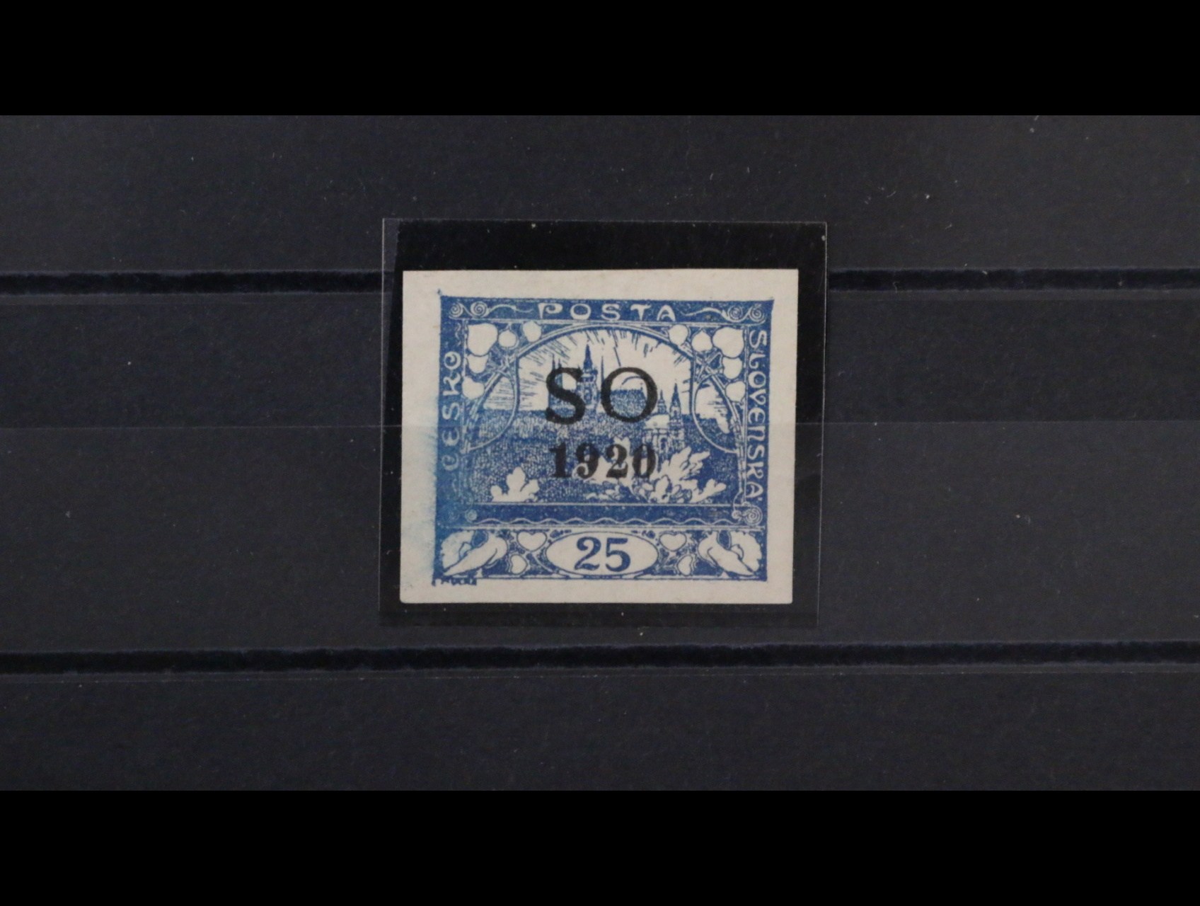 zn. SO č. 7, zk. Karásek, Mahr, na pravém okraji až do známky zeslabený papír, k porovnávacím účelům, zajímavé