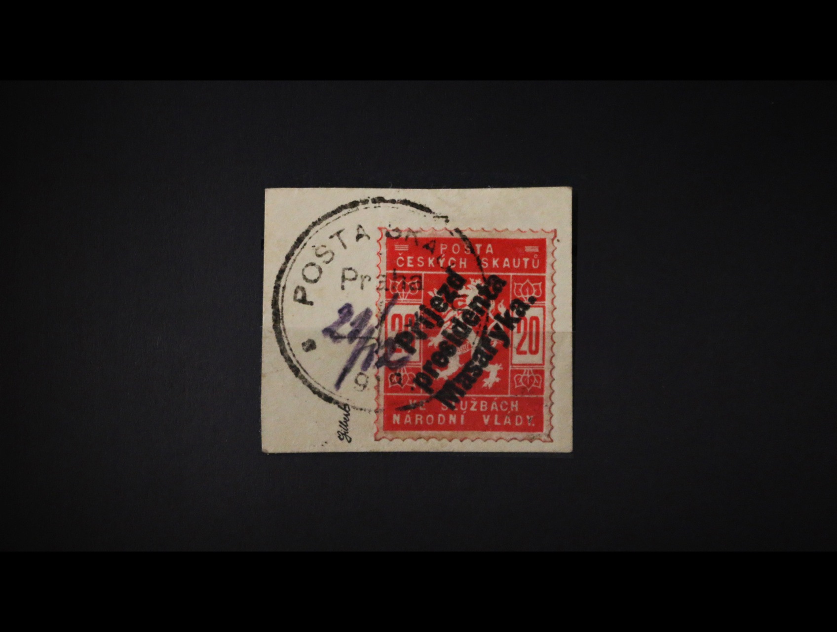 zn. SK č. 4 na výstřižku s kul. raz. POŠTA SKAUTŮ PRAHA 1918 s ruční datací 21.12., zk. Gilbert