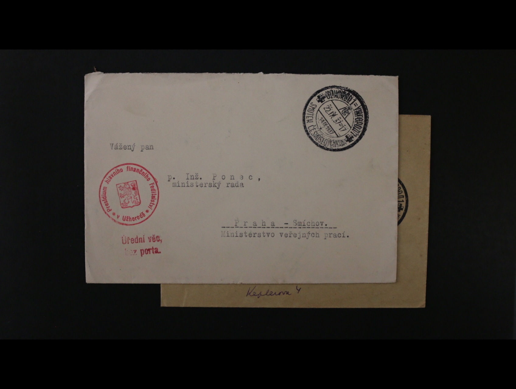 úřední dopis s pod. smutečním raz. SMUTEK ČESKOSLOVSNSKA UŽHOROD 1 22.9.37 + úřední raz. finančního úřadu Užhorod a firemní obálka - tiskopis s raz. SMUTEK ČESKOSLOVENSKA UŽHOROD 1 21.9.37