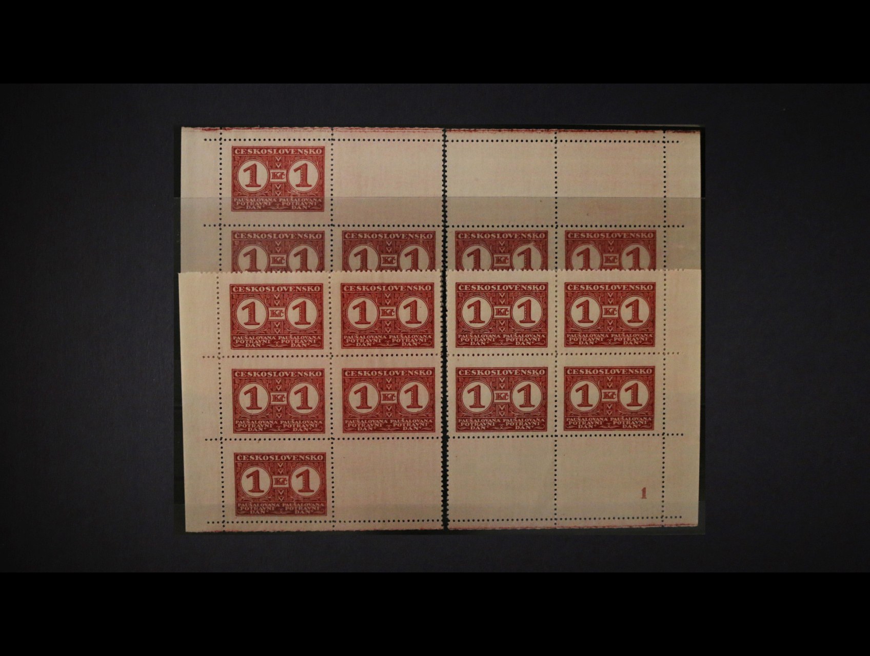 Potravní daň - zn. PD 9 B - sestava 4 rohových 6ti-bloků s kupony a DZ 1 - miniatura, kat. cena cca 4000 Kč