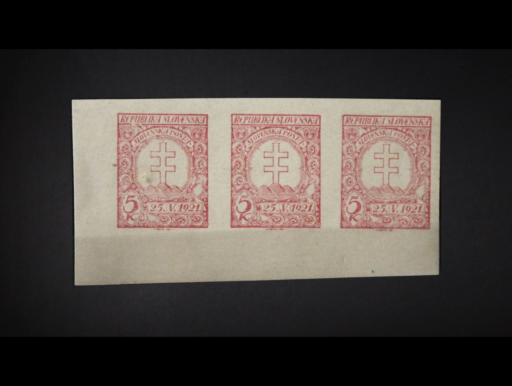 nevydaná zn. slovenských separatistů z 25.5.1921 - levá spodní roh. třípáska v červené barvě na karton. papíře