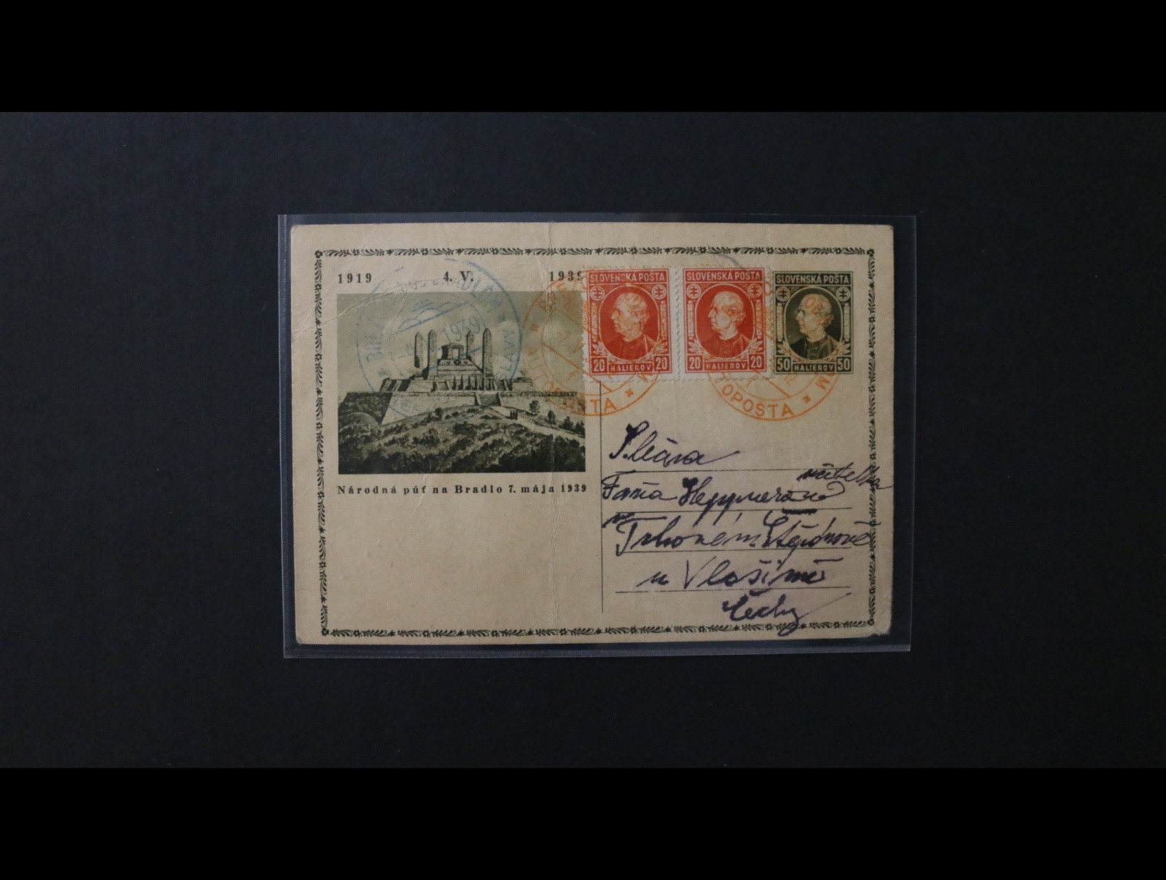 CDV č. 1 do Protektorátu dofrank. zn. 20h Hlinka 2x s oranžovým pod. raz. BEREZOVÁ POD BRADLOM AUTOPOŠTA 7.5.39 + otisk modrého raz. z. 1. dne vydání 4.5.39