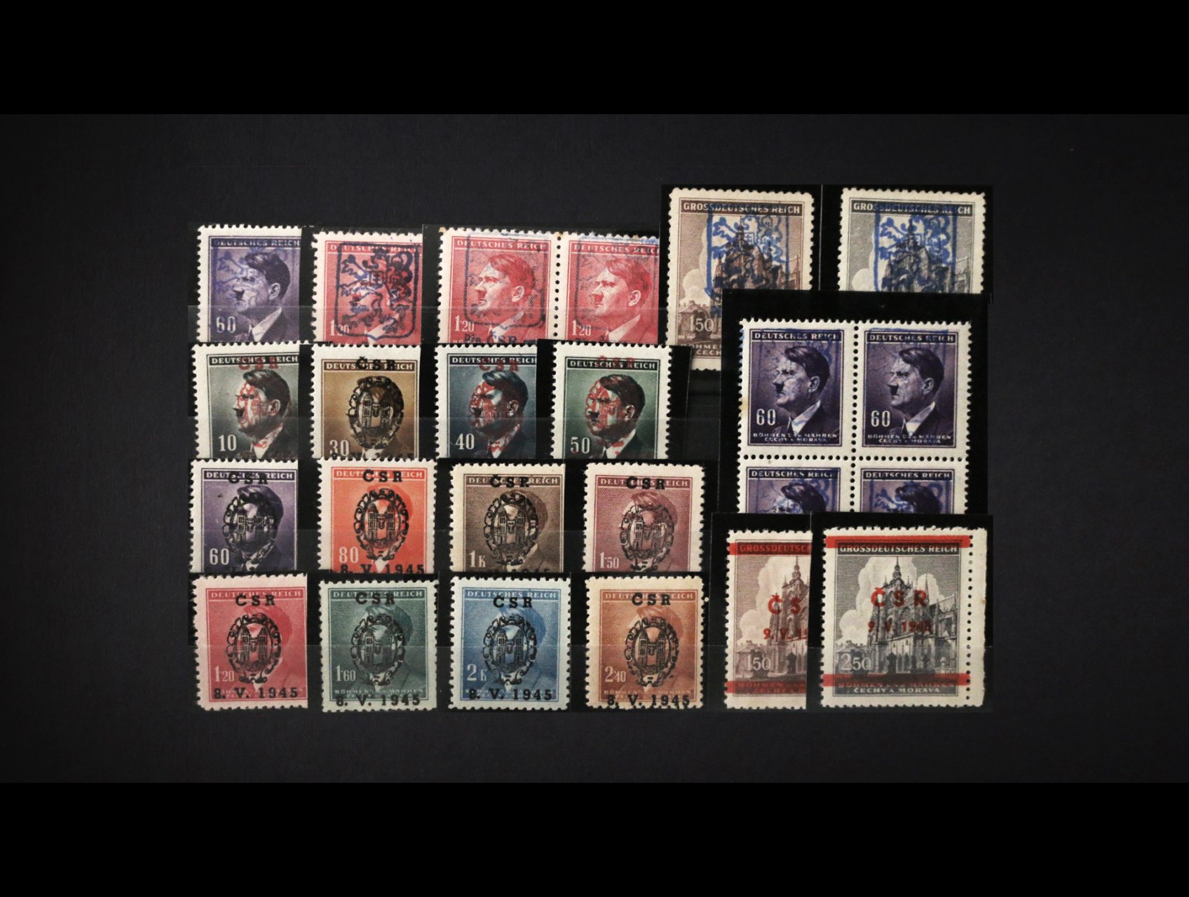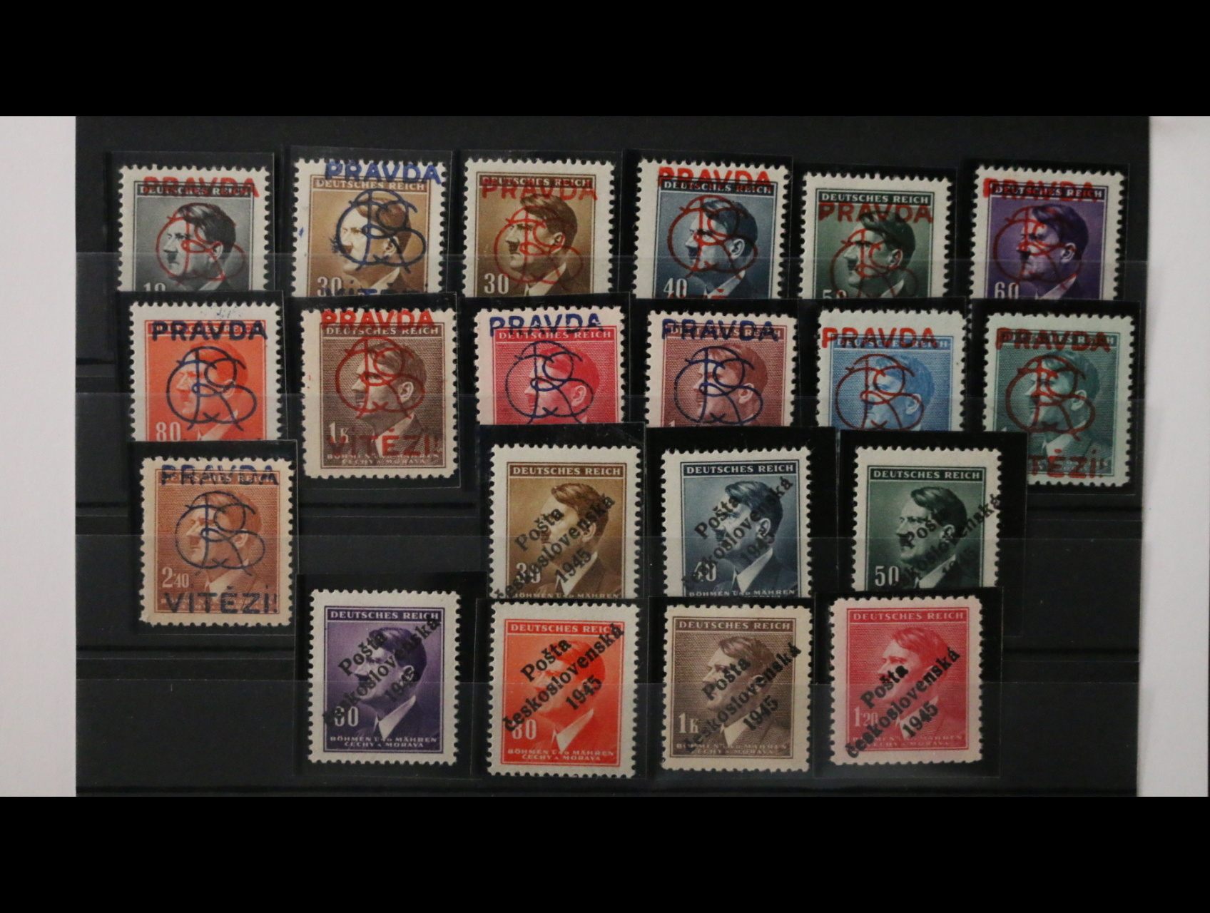 Praha - Smíchov, Praha - Liboc - sestava 20 ks protektor. zn. s červeným, resp. modrým přetiskem PRAVDA VÍTĚZÍ ČSR a černým přetiskem Pošta českoslocenská 1945