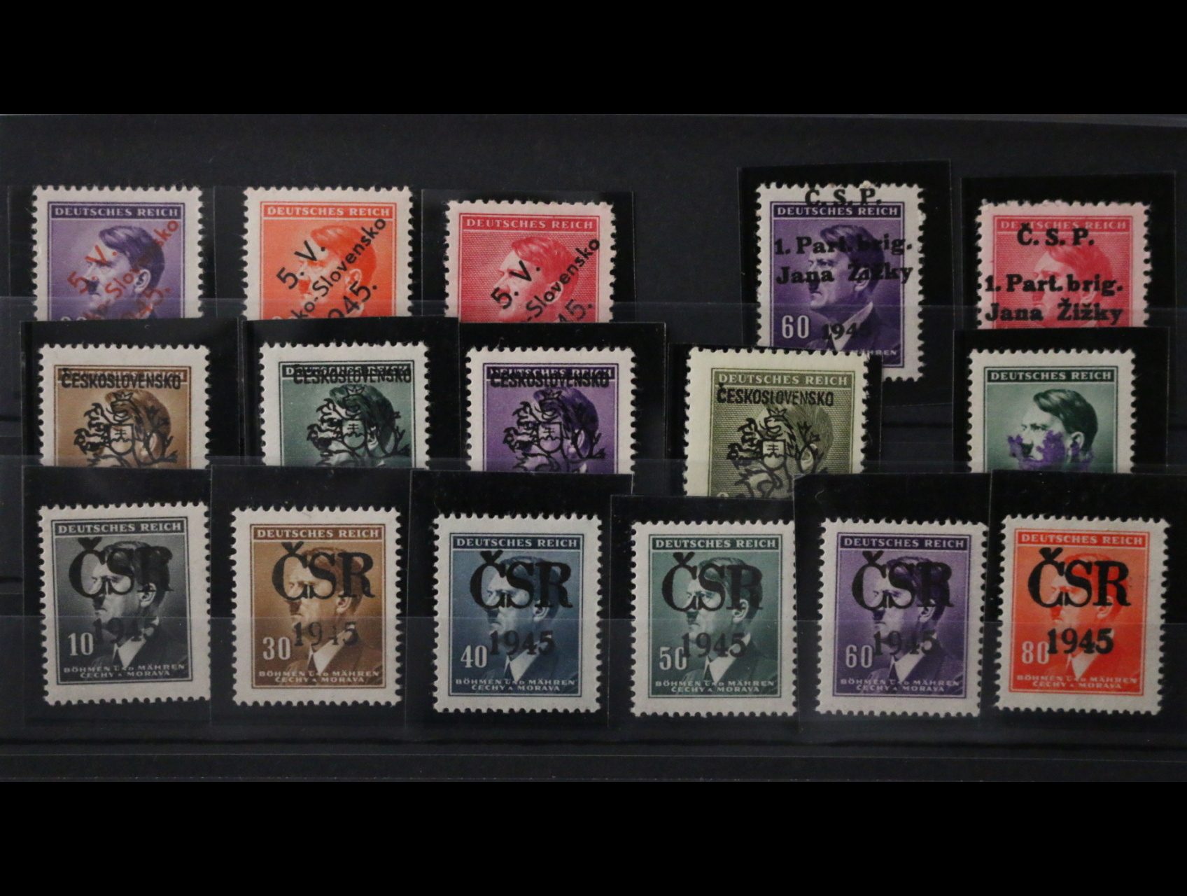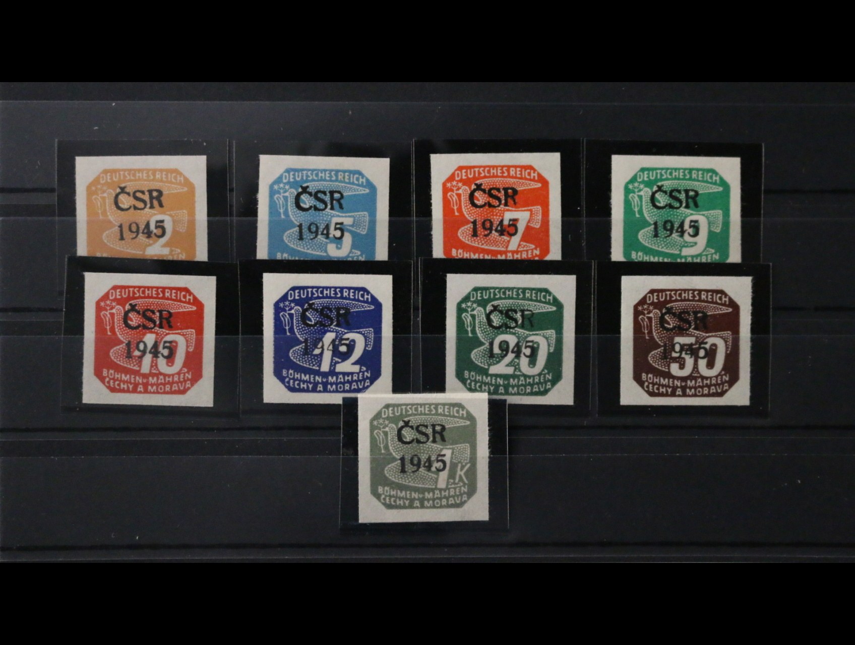 Nové Město na Mor. - kompl. sestava (19 ks) protektor. zn. s přetiskem III. ČSR 1945