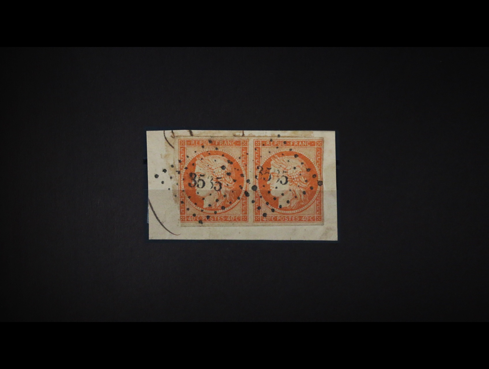 zn. kat. Ma. č. 5 40c oranžová ve vodorovné dvoupásce na výstřižku, znehodnoc. němým čís. raz., 1370 EUR