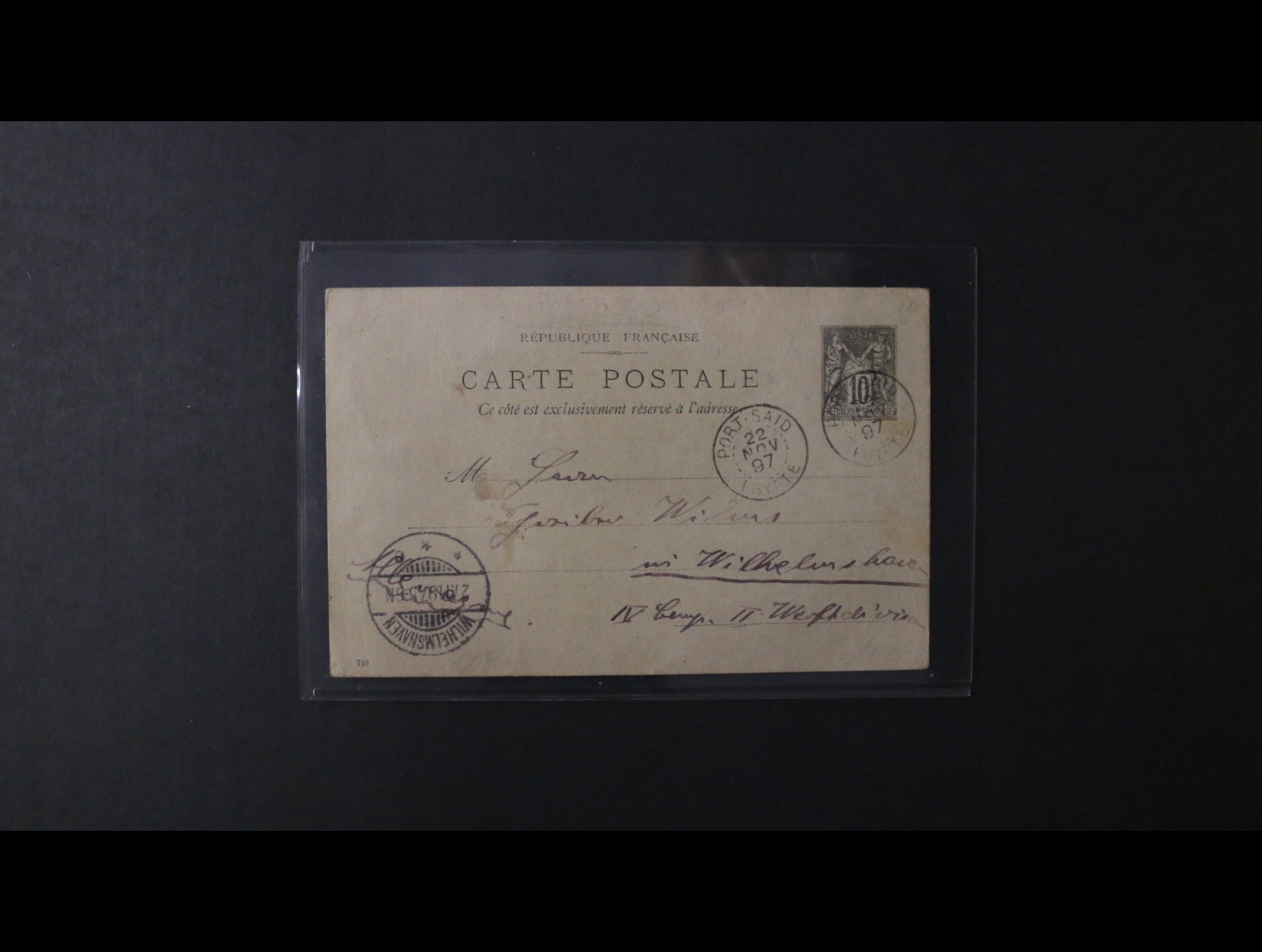 francouzská pošta v Egyptě - KL 10c "Alegorie" zaslaný z Egypta do Německa, pod. raz. PORT SAID 22.11.1897, přích. raz.