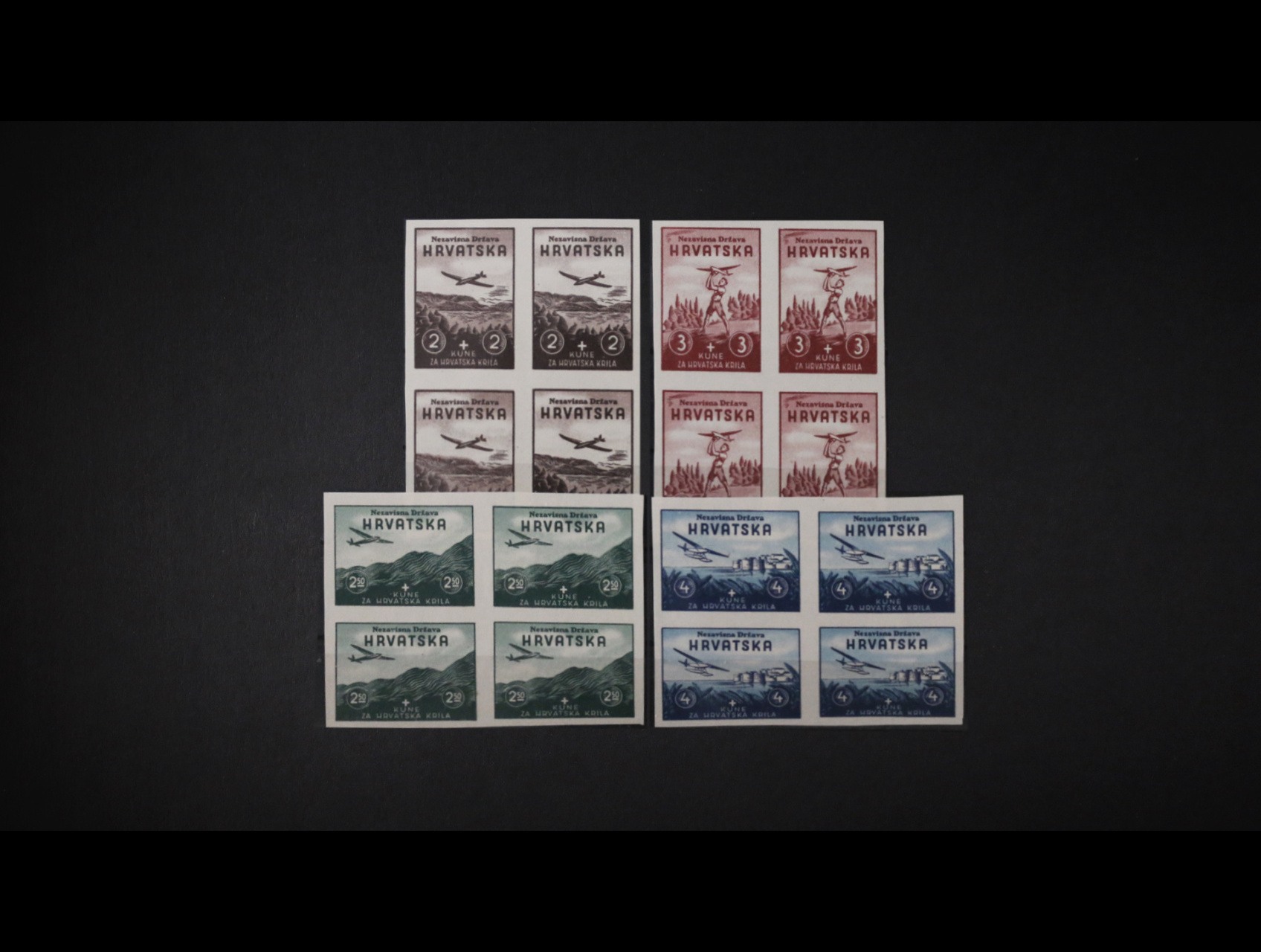 zn. Mi. č. 70 U - 73 U ve dvoupáskách s dvouzn. meziarším, atest Jovan Veličkovič