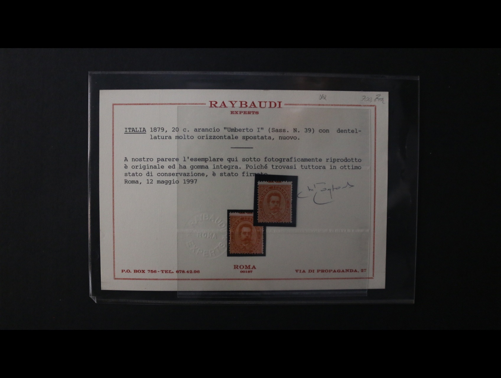 984 zn. Sass. č. 39, atest Raybaudi, 700 EUR 2500