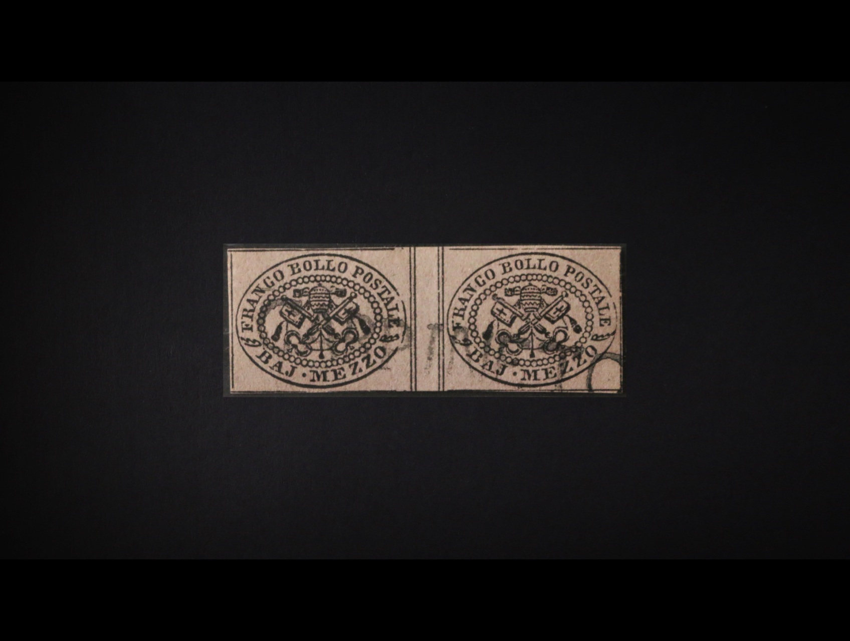 986 Staroitalské státy - Církevní stát - zn. Sass. 1 A 1/2Baj. ve vodorovné dvoupásce s meziarším, pod. raz. CARPINETO, zk. Diena, kat. cena 3000 EUR ++ 9500