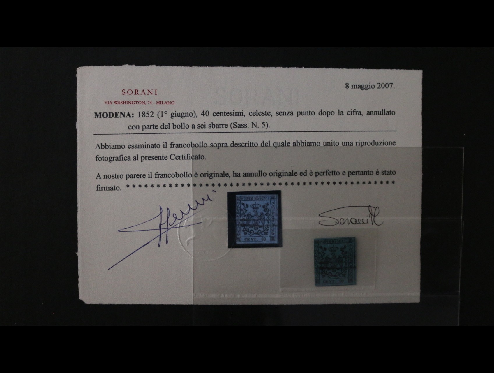 988 Staroitalské státy - Modena - zn. Sass. č. 5 40c, zk. a atest Sorani, kat. cena 4500 EUR 13500