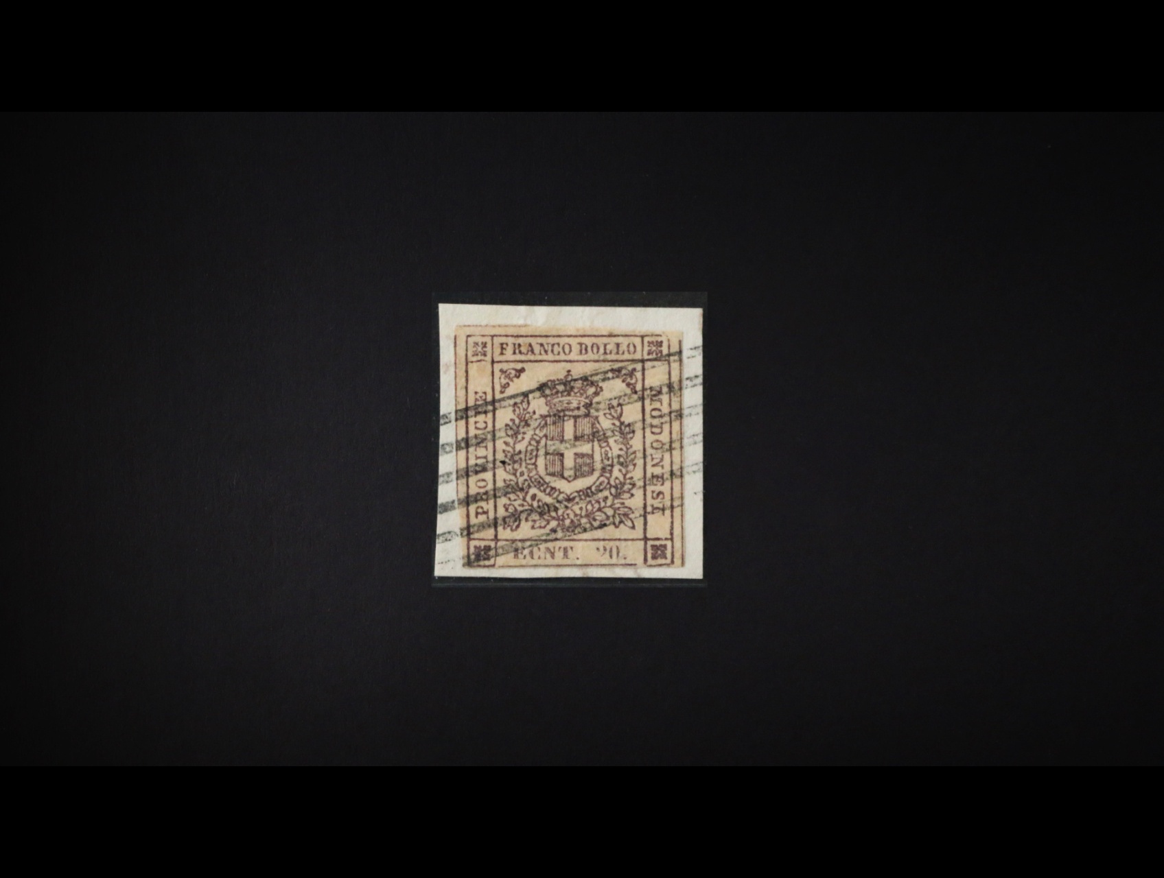989 Staroitalské státy - Modena - zn. Sass. č. 16c na výstřižku, hledaný chybotisk - namísto "cent 20 je ecnt 20", zk. Sorani, kat. cena 6000 EUR, zajímavé, vzácné 13000