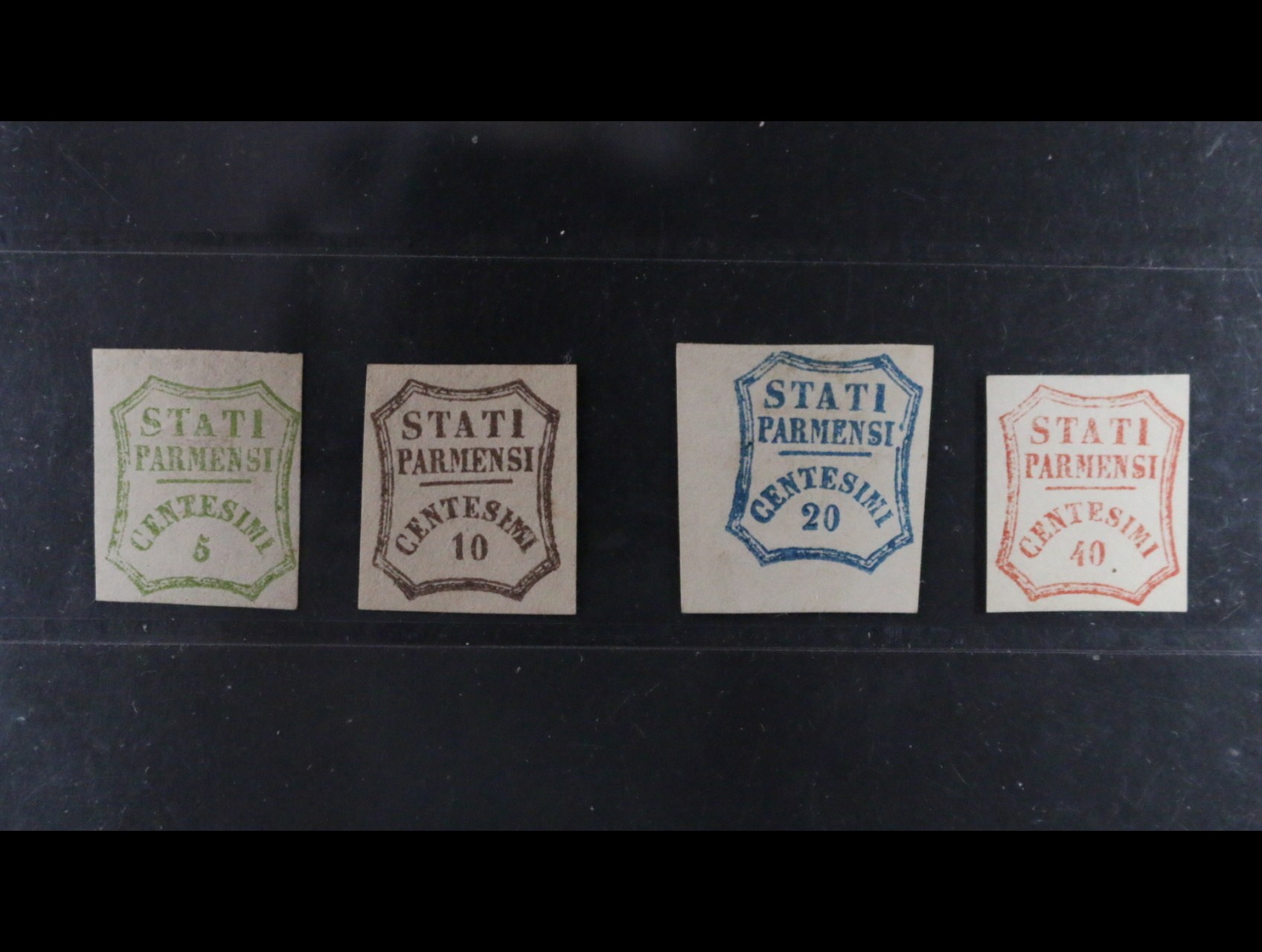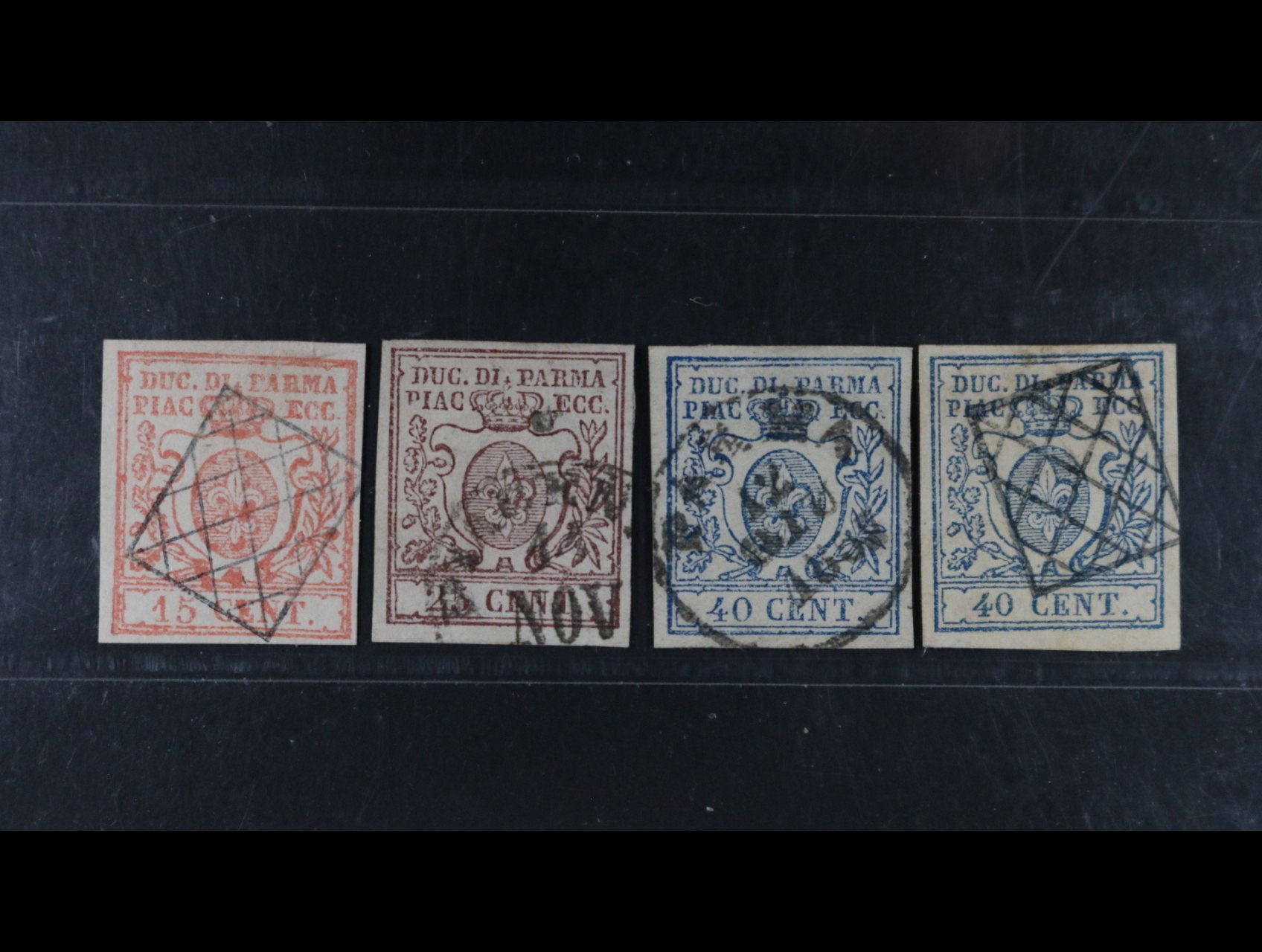 995 Staroitalské státy - Parma - zn. Sass. č. 1 - 5, vybrané střihy i raz., kat. cena 2160 EUR 7200