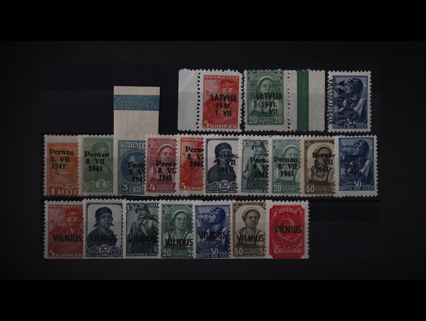 Latvia - zn. Mi. č. 1 a 4, Litauen zn. Mi. 6, 10 - 16, Pärnau zn. Mi. 1 - 10, cca 70 EUR