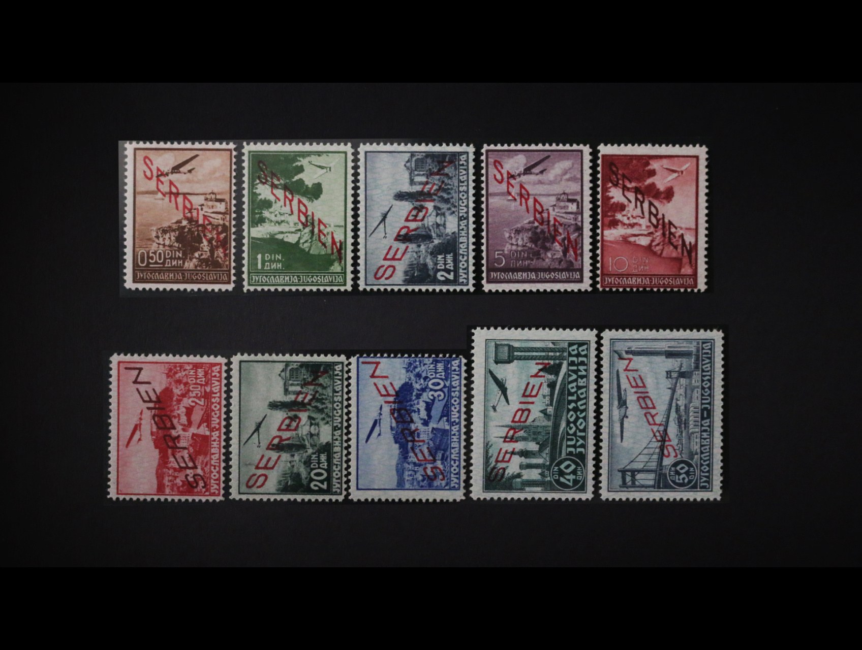 Serbien 1941 zn. Mi. č. 16-25, oblíbená letecká serie, kat. 280 EUR