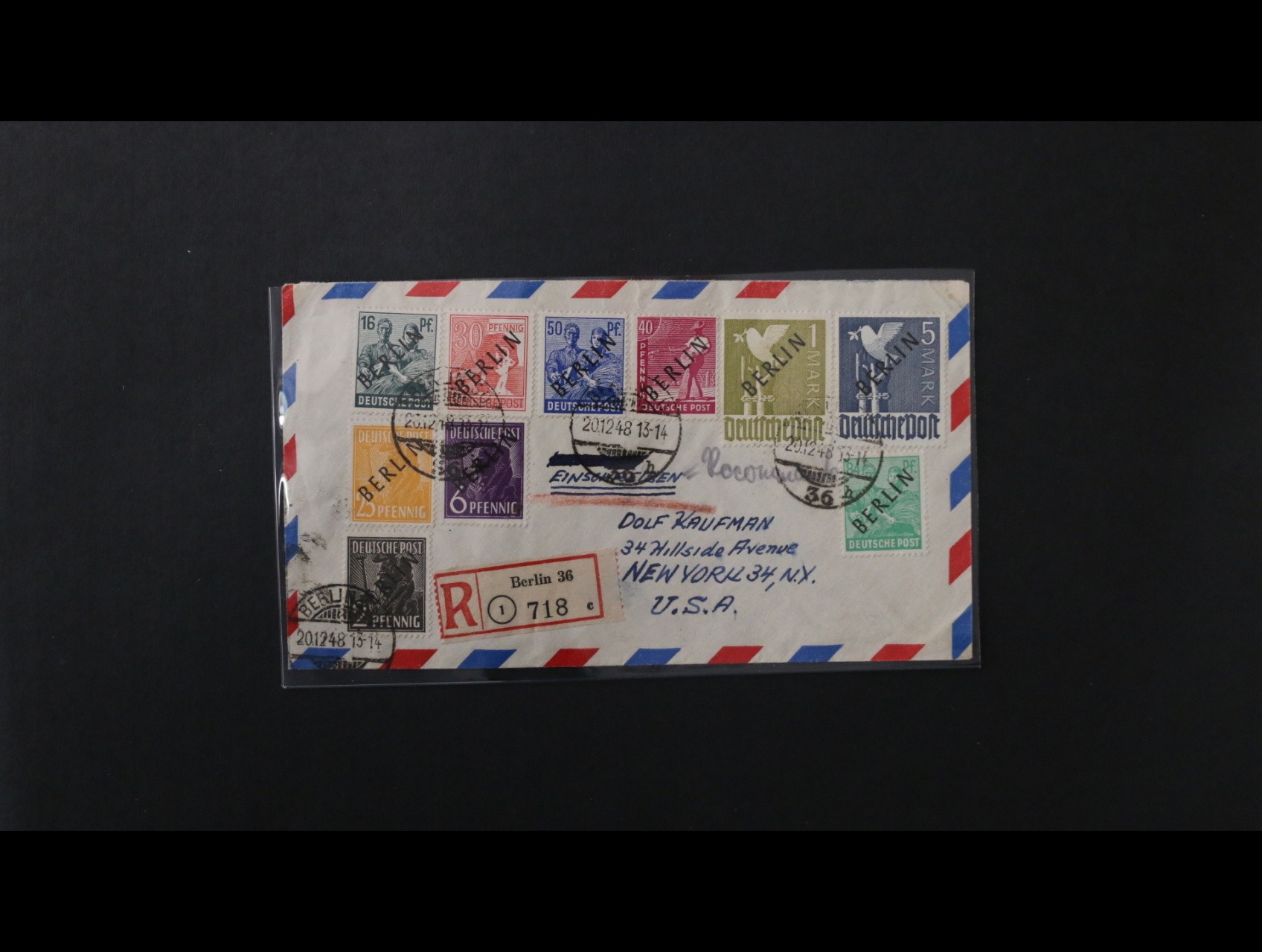 zn. Mi. č. 1-20, kompletní série na dvou R-dopisech do USA, bezvadné, atest Sismondo, kat. jen jako razítkované známky 2400 EUR