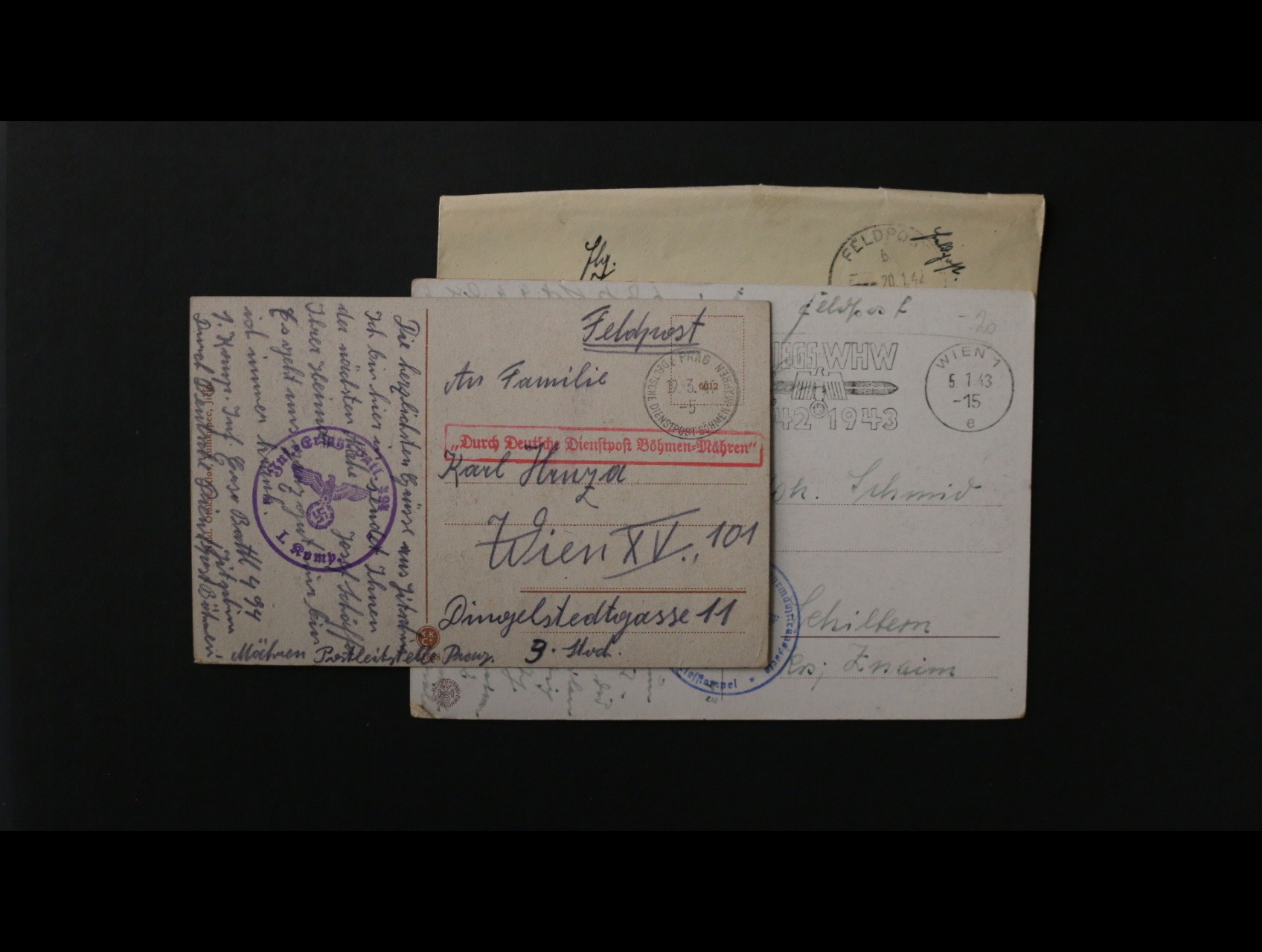 sestava 27 ks pohlednic, KL a dopisů přepr. něm. PP v letech 1941 - 43
