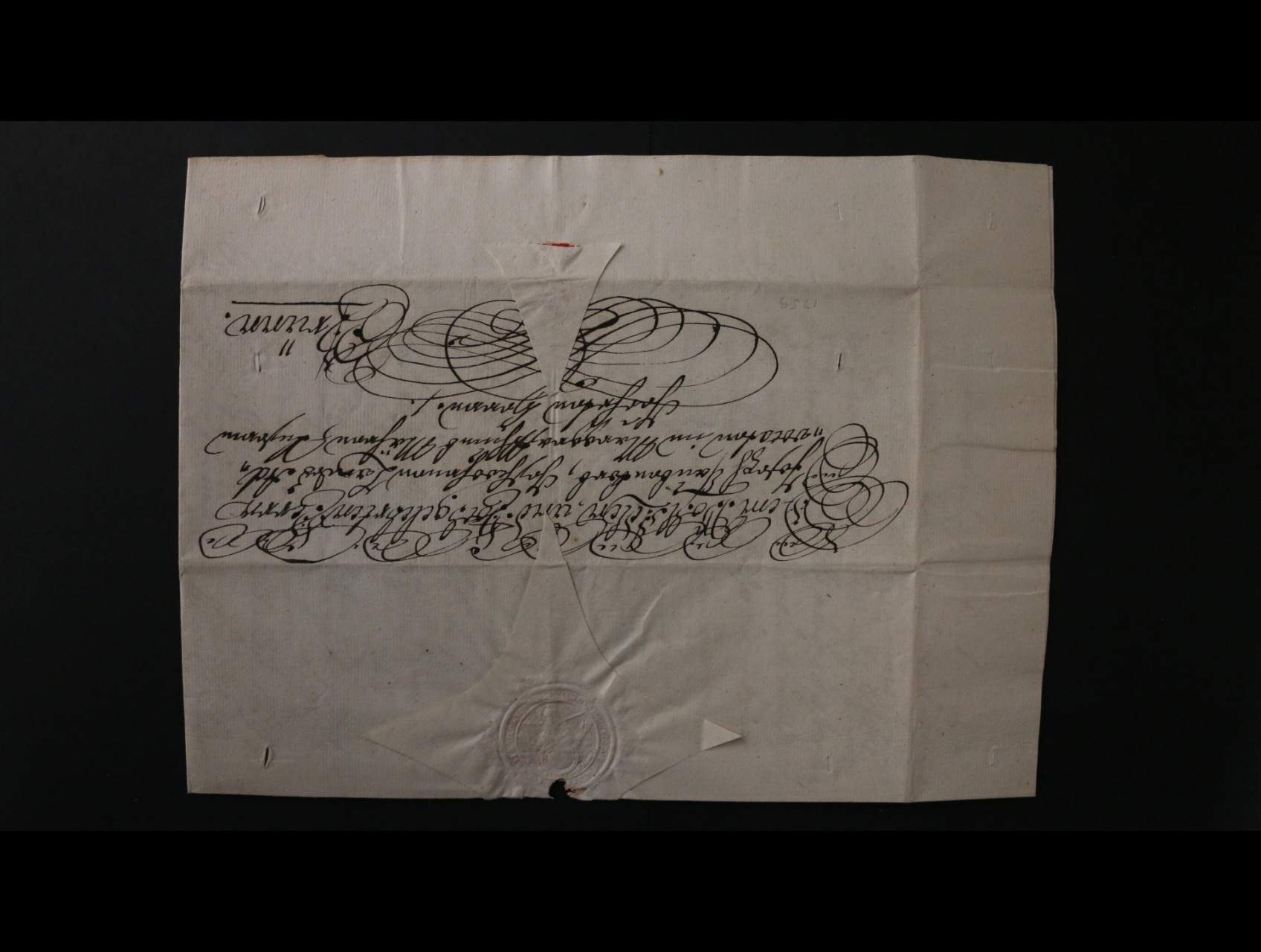 skl. šlechtický dopis do Brna z r. 1759 se zdvořilostní adresou a suchou pečetí