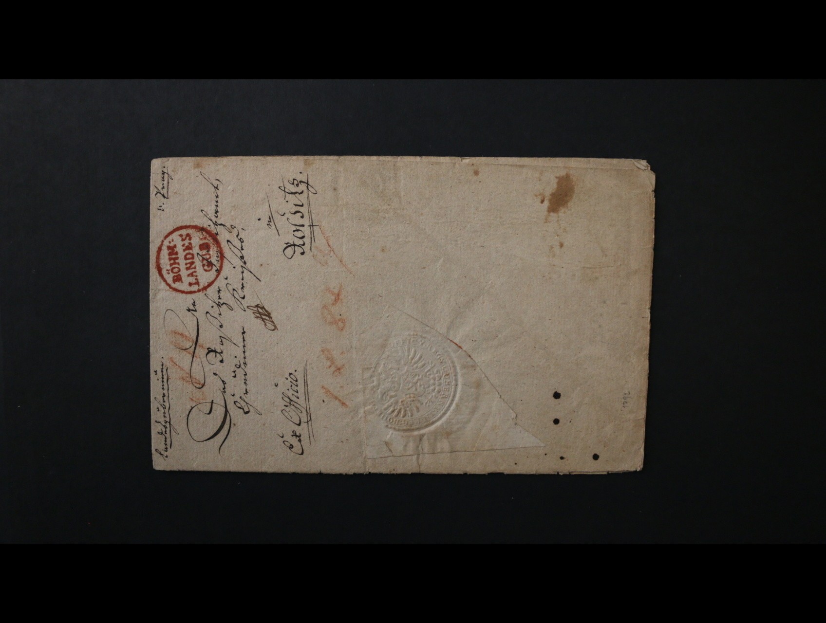 skl. služební R-dopis z r. 1792 s kompl. pečetí a kulatým červeným úředním raz. BÖHM: LANDES: