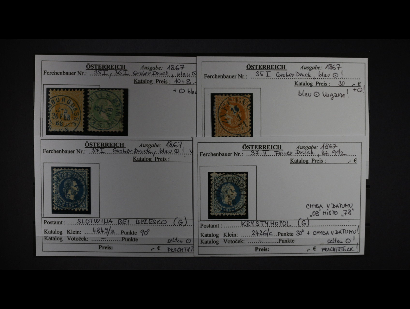 zn. Fe. č. 35 I (2x), 36 I, 37 I, 37 II, 4x s modrým raz., 1x s chybnou datací
