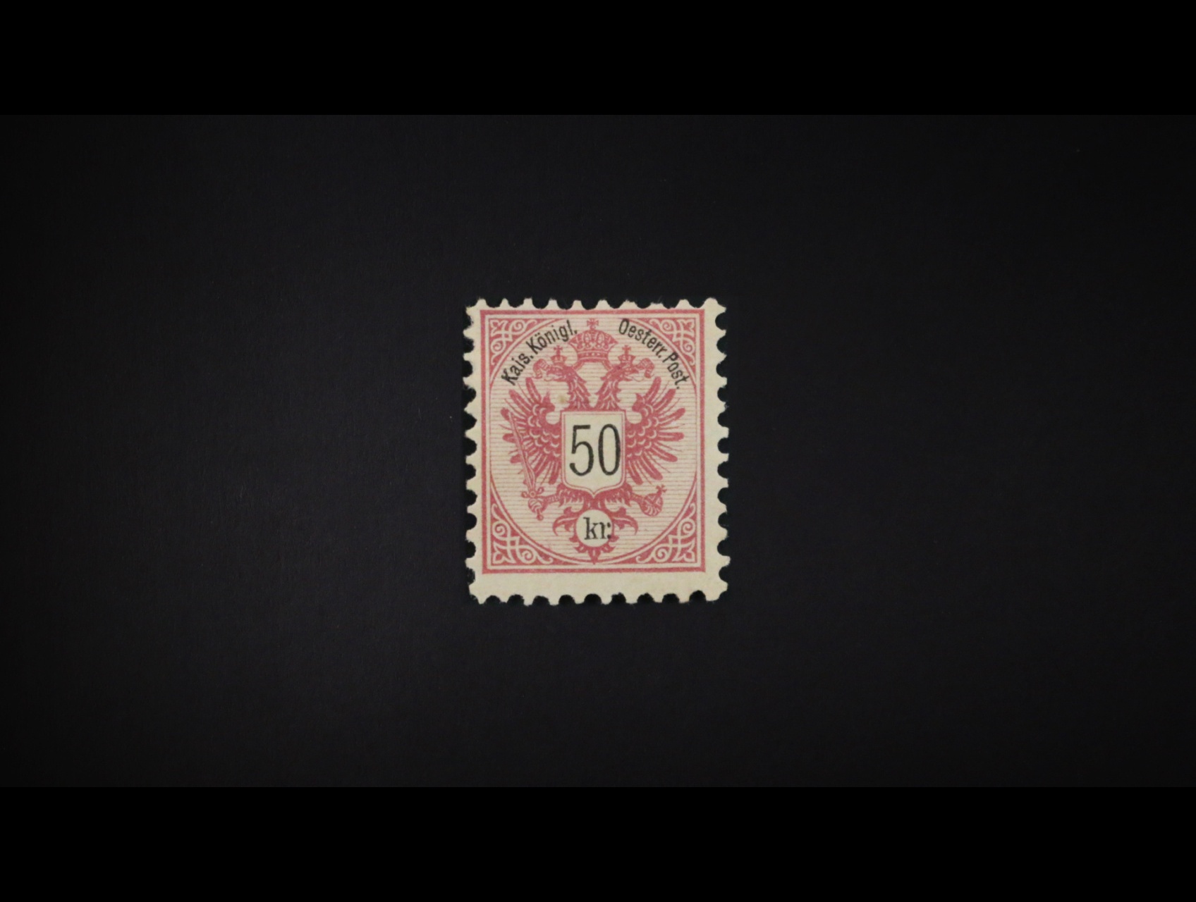 zn. Fe. č. 49 A, 50Kr Orlice, červenofialová, zoubkování 9 1; nepatrný lom v lepu,