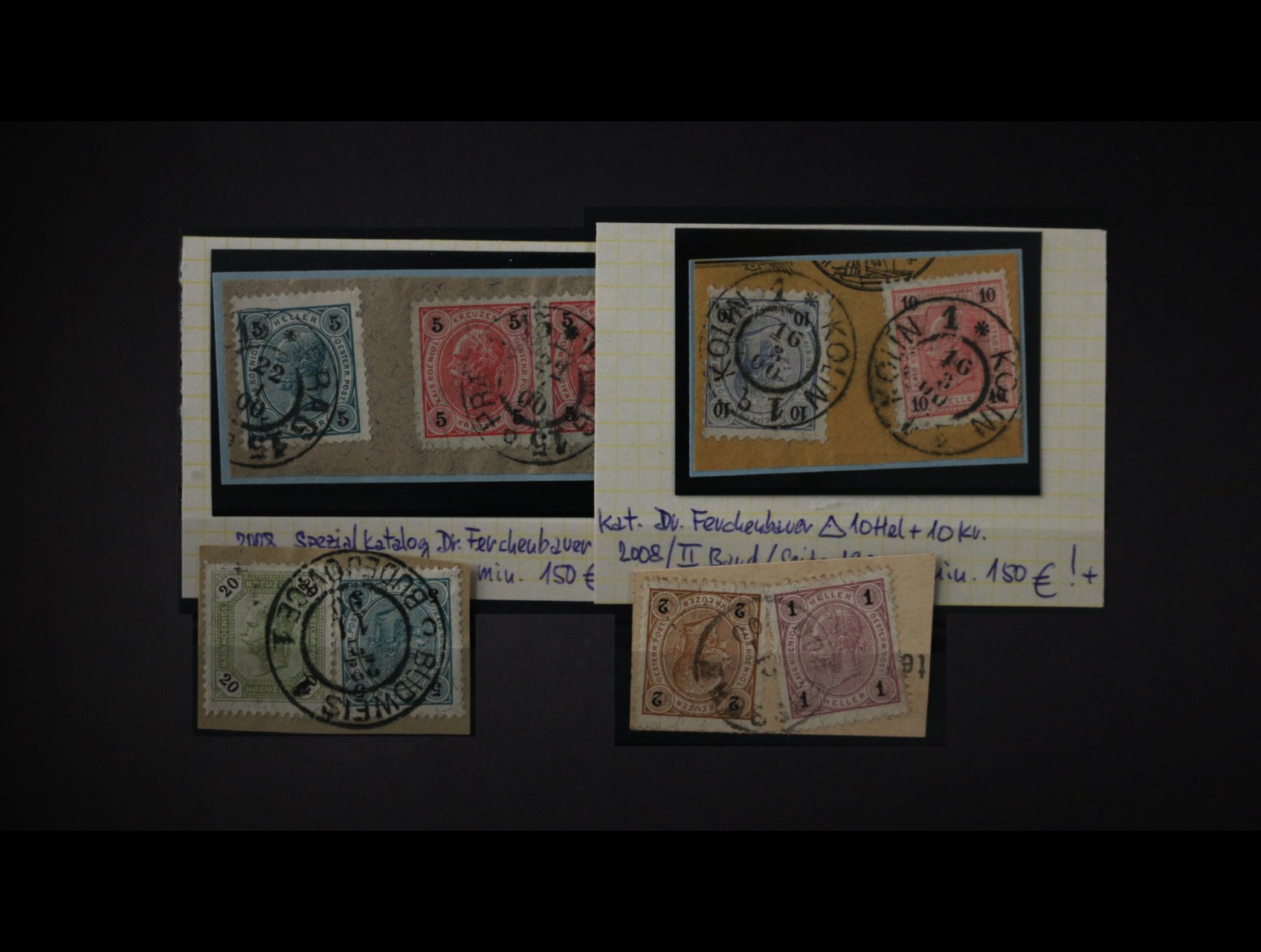 sestava 4 ks výstřižků se smíš. frankaturou Kreuzer + Heller, zajímavé