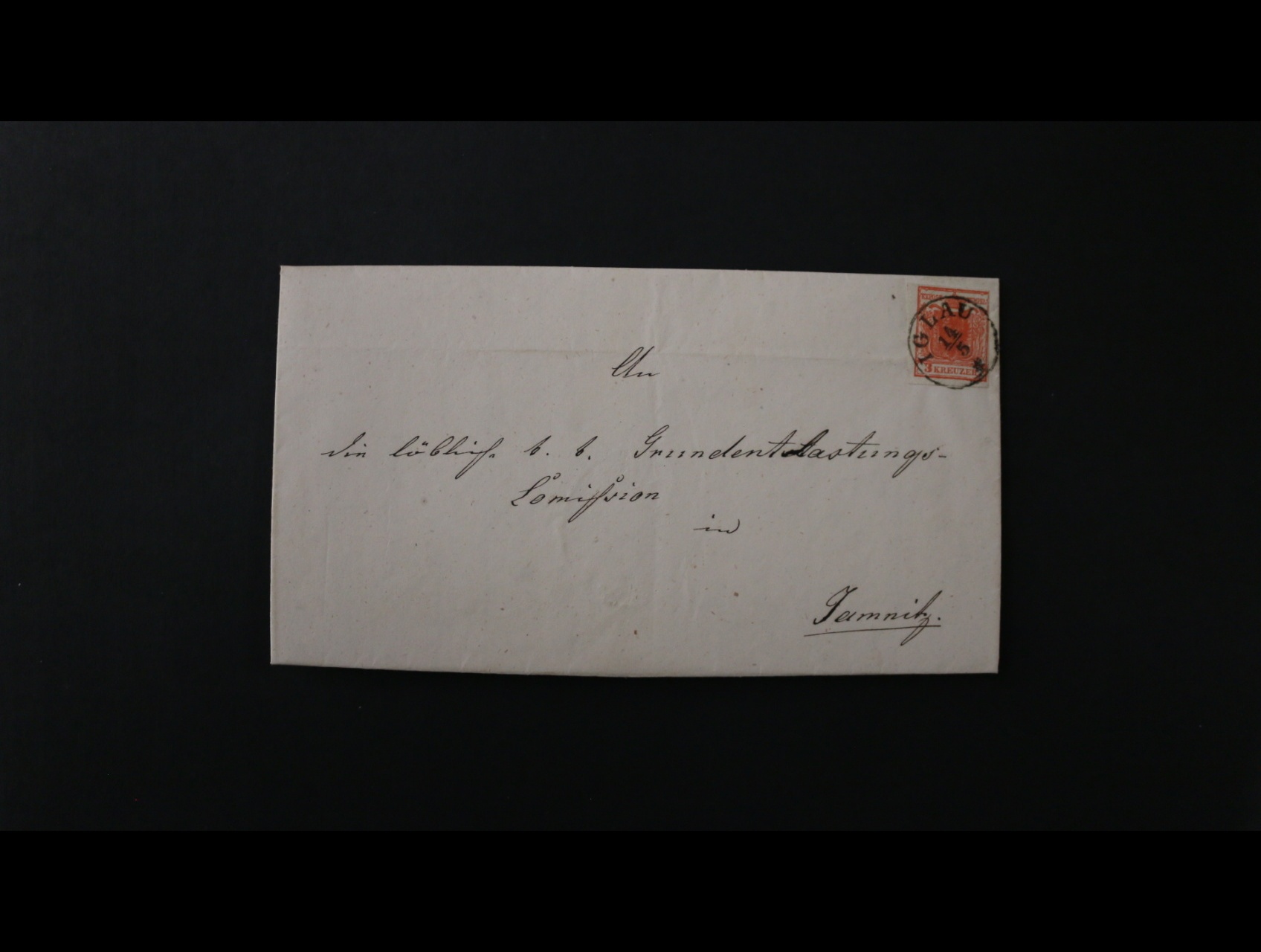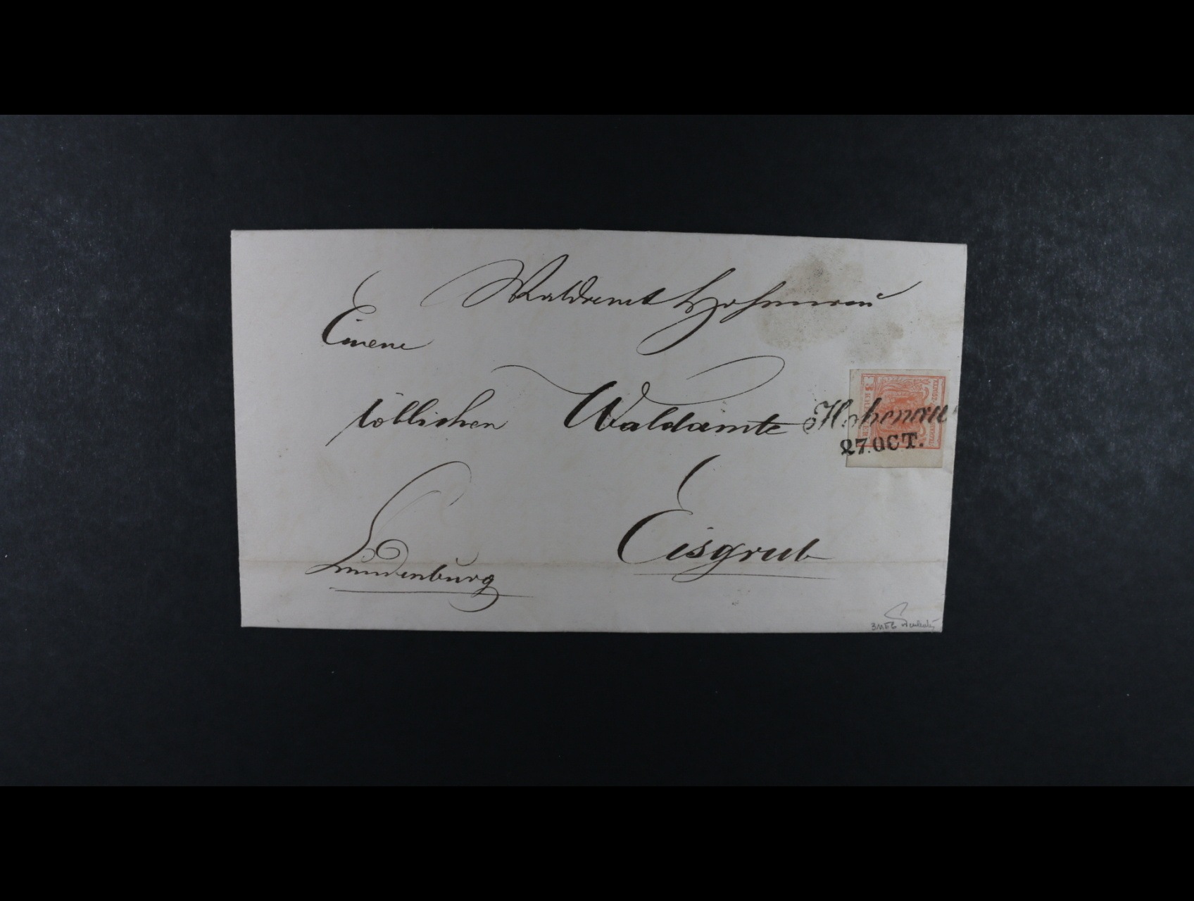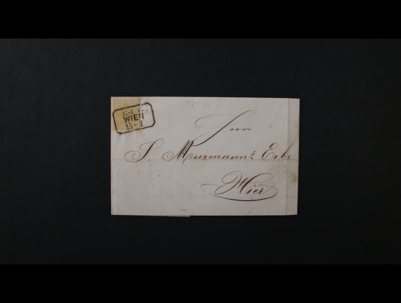skl. dopis z r. 1851 frank. zn. Fe. č. 3, typ I, vypodložený střed, pod. raz. IGLAU 14.5., lehký registr. lom v horní části, cca 200 EUR