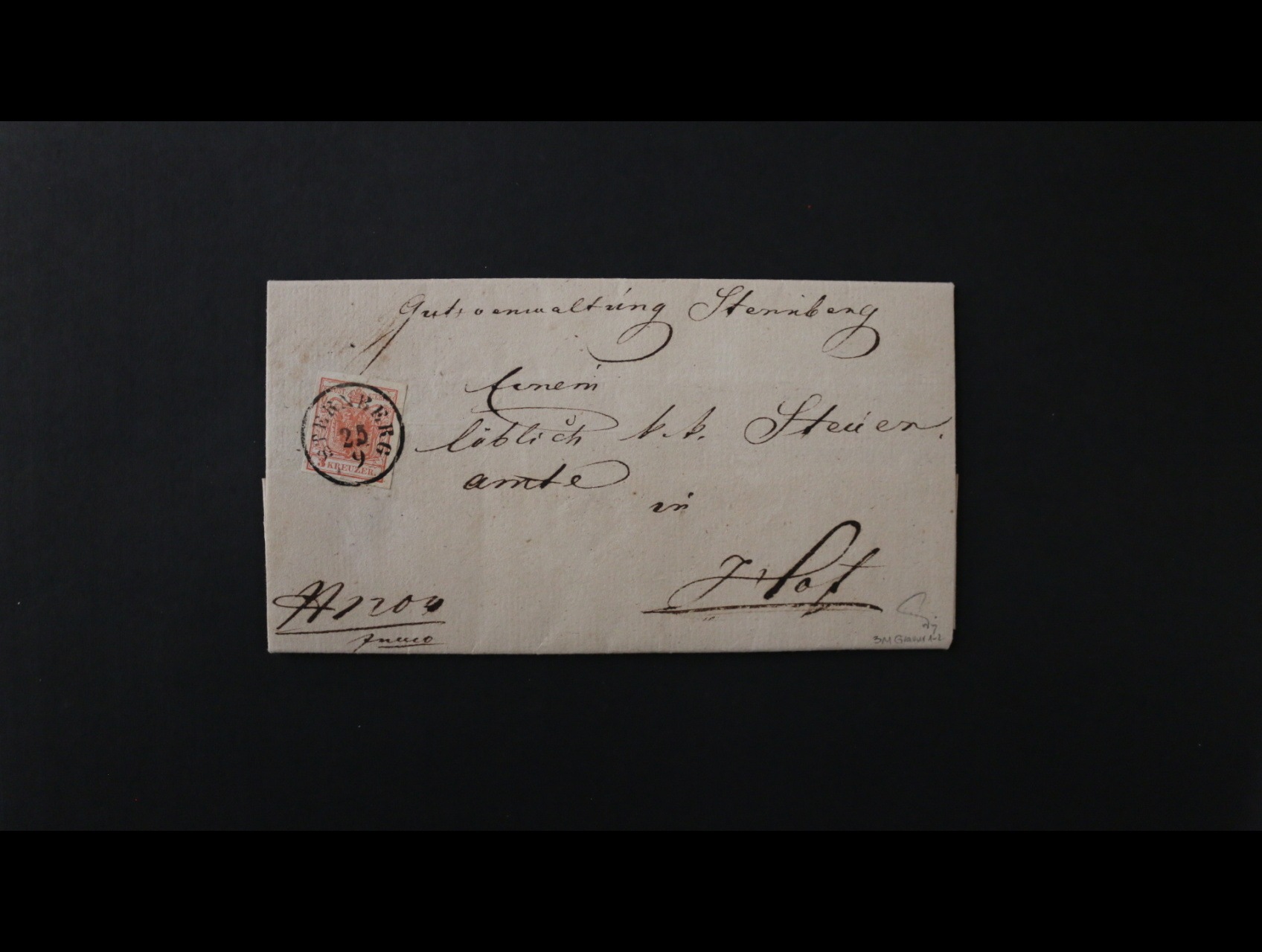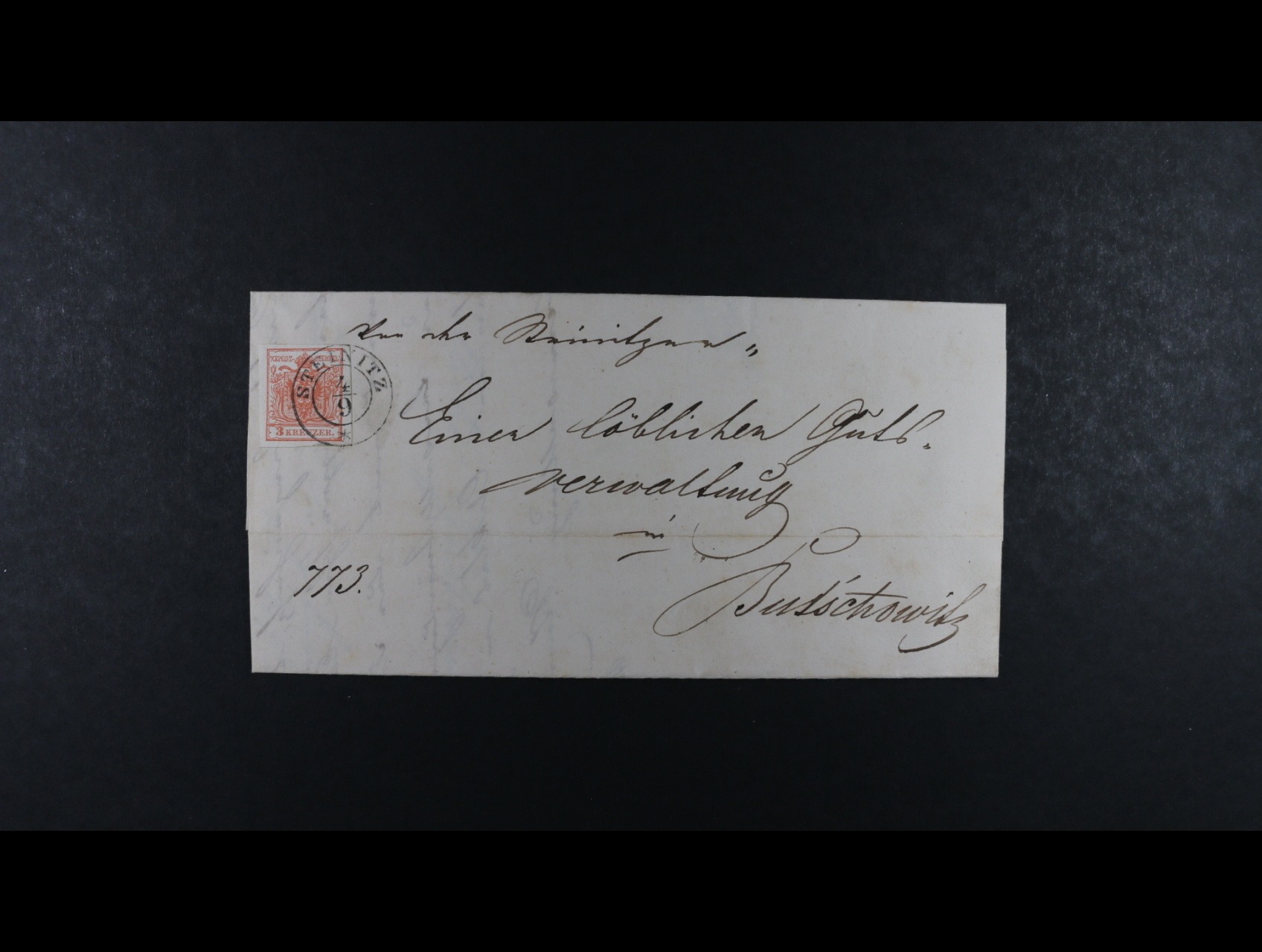 skl. dopis do Bučovic z r. 1853 frank. zn. Fe. č. 3, typ I, pod. raz. STEINITZ, přích. raz. velmi dobrý stav