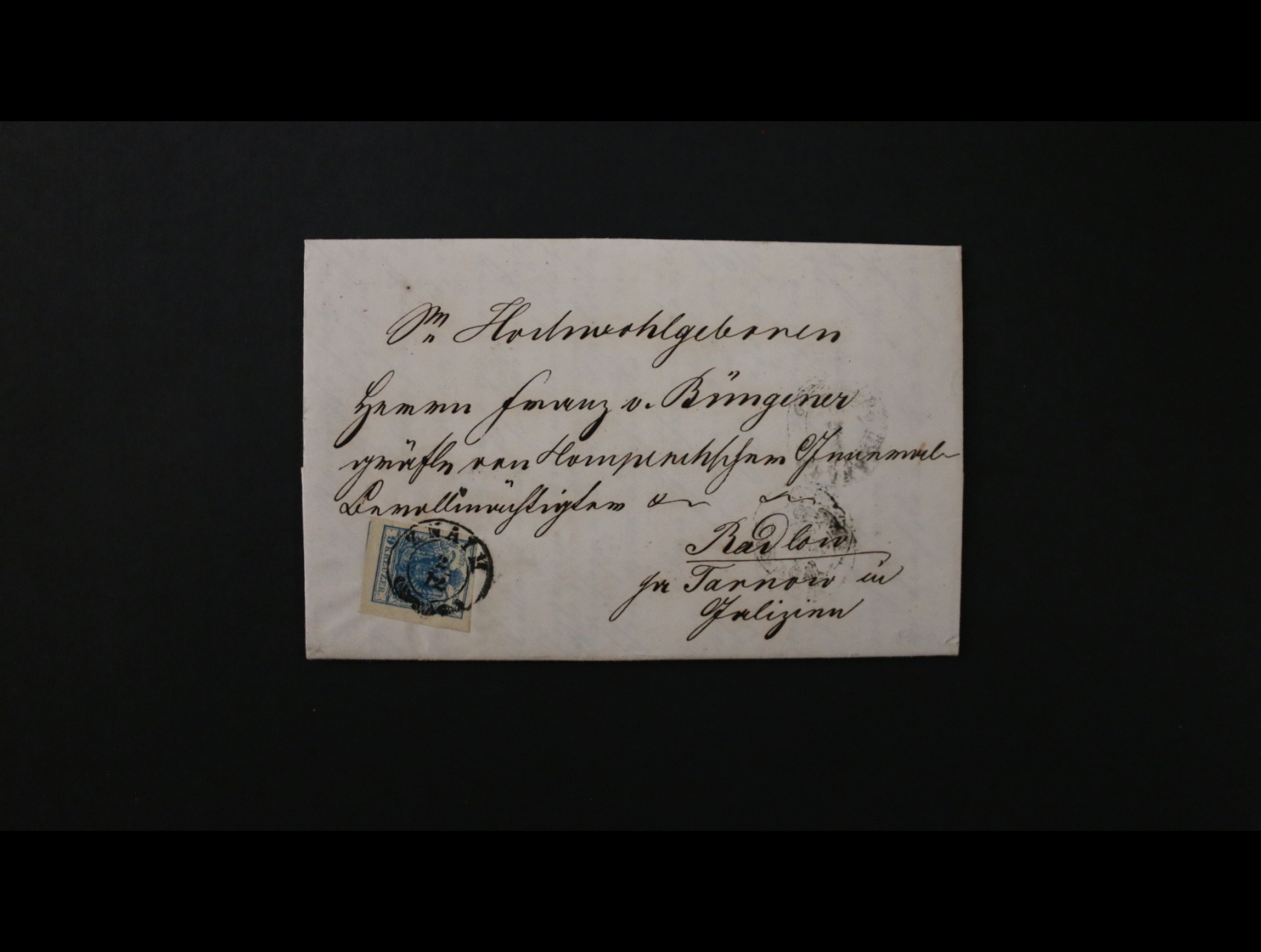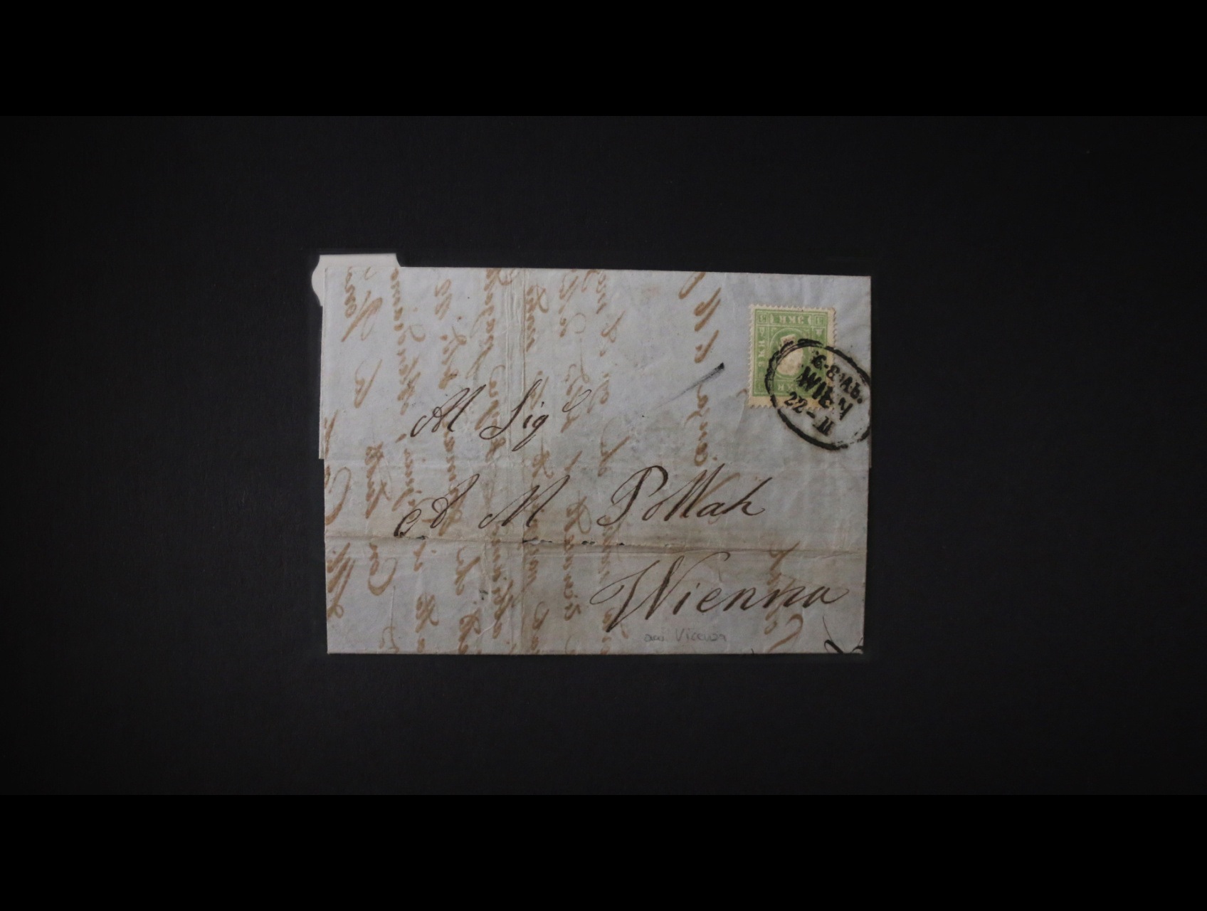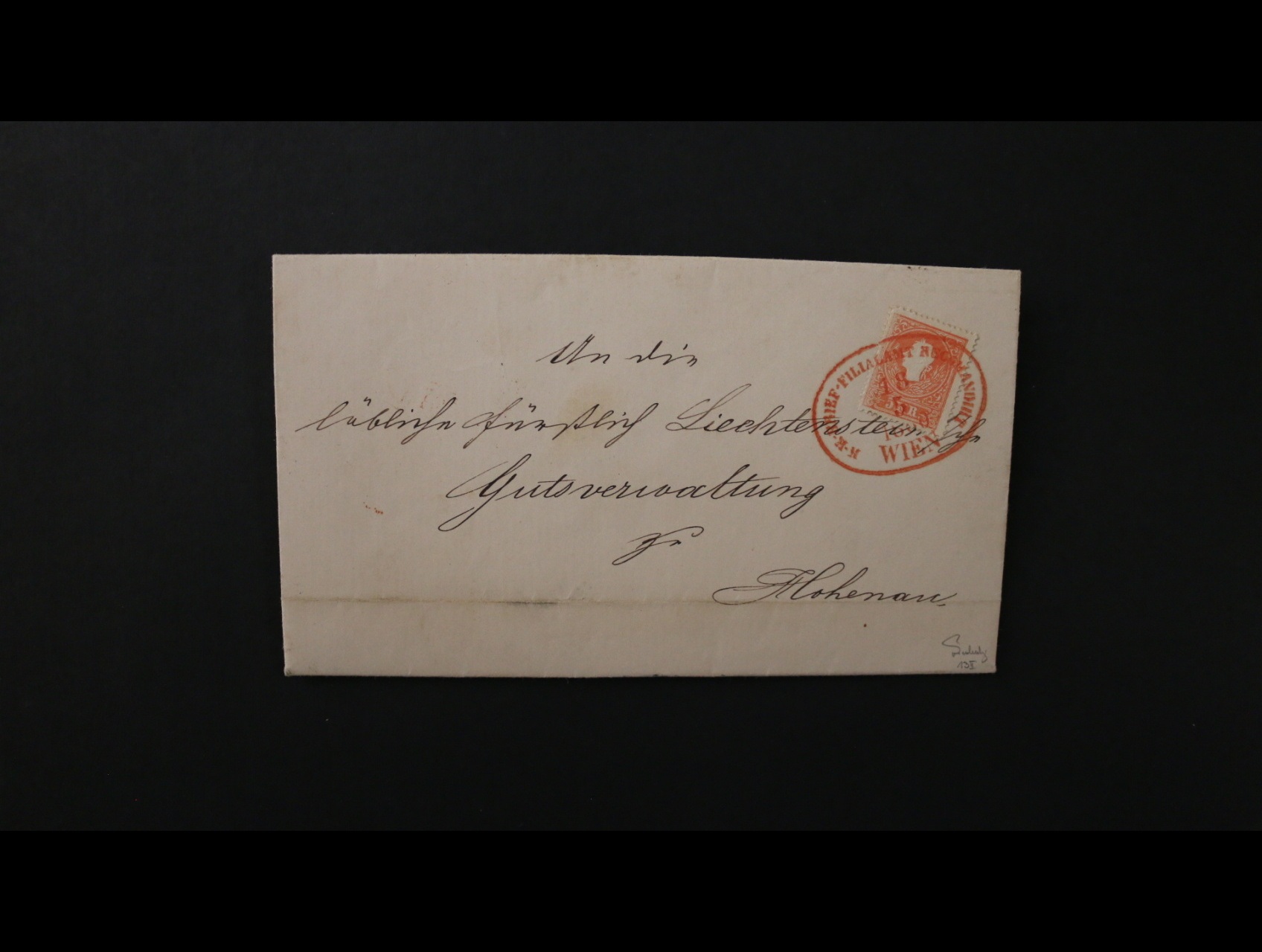 skl. dopis z r. 1860 v místě, frank. zn. Fe. č. 12 s oválným pod. raz. WIEN, cca 500 EUR