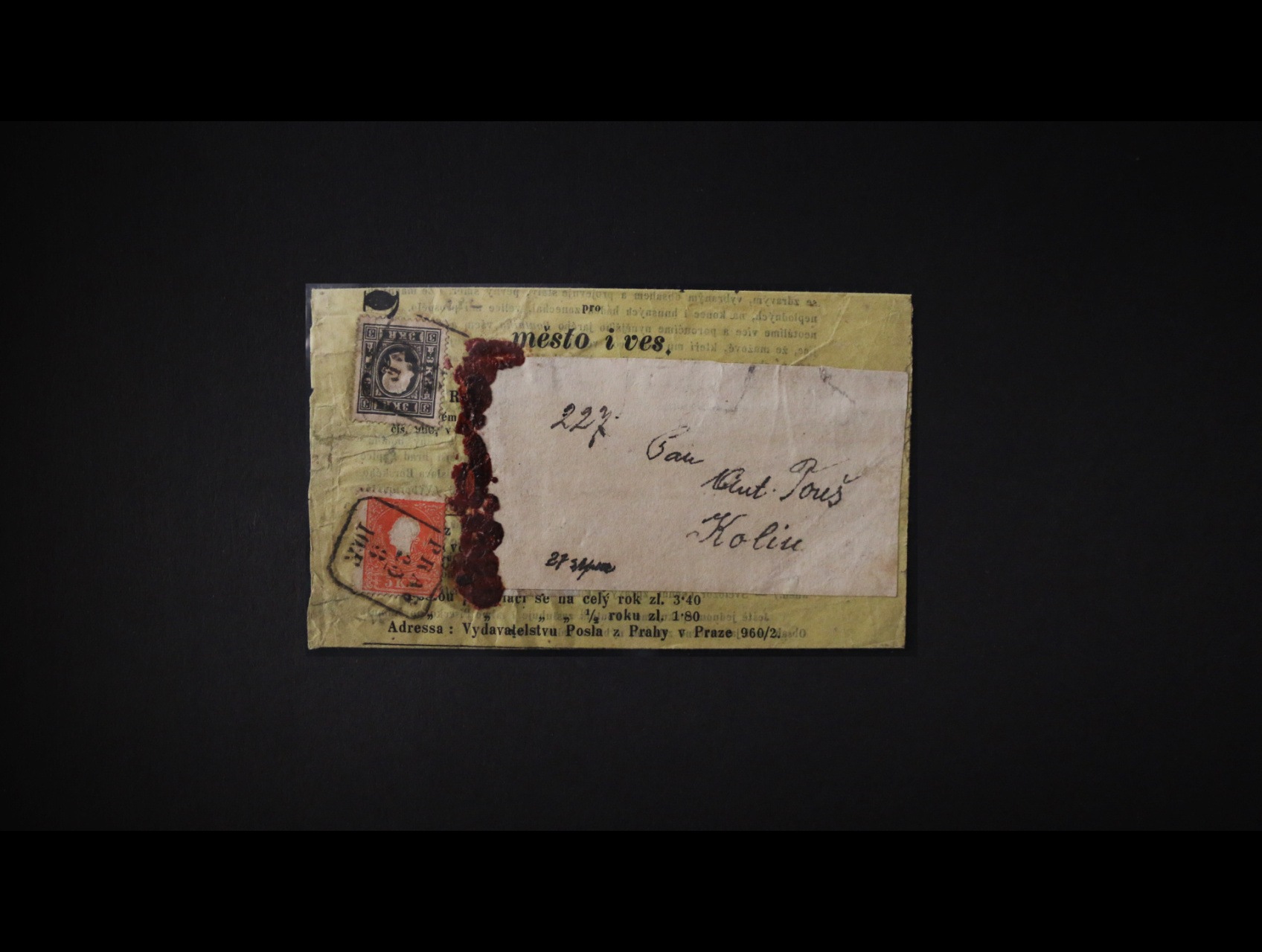 první strana časopisu “Posel z Prahy” s celým adresním štítkem, zasláno do Kolína jako 4 x těžší tiskopis 3+5kr , smíšené typy I+II. typ; stopy stáří, kat. bez ohledu na typy minimálně 3500 EUR (Ferch.II, str.527), tyto frankatury jsou známé zejména z polské části monarchie, v rámci našeho území se jedná o velmi vzácnou celistvost