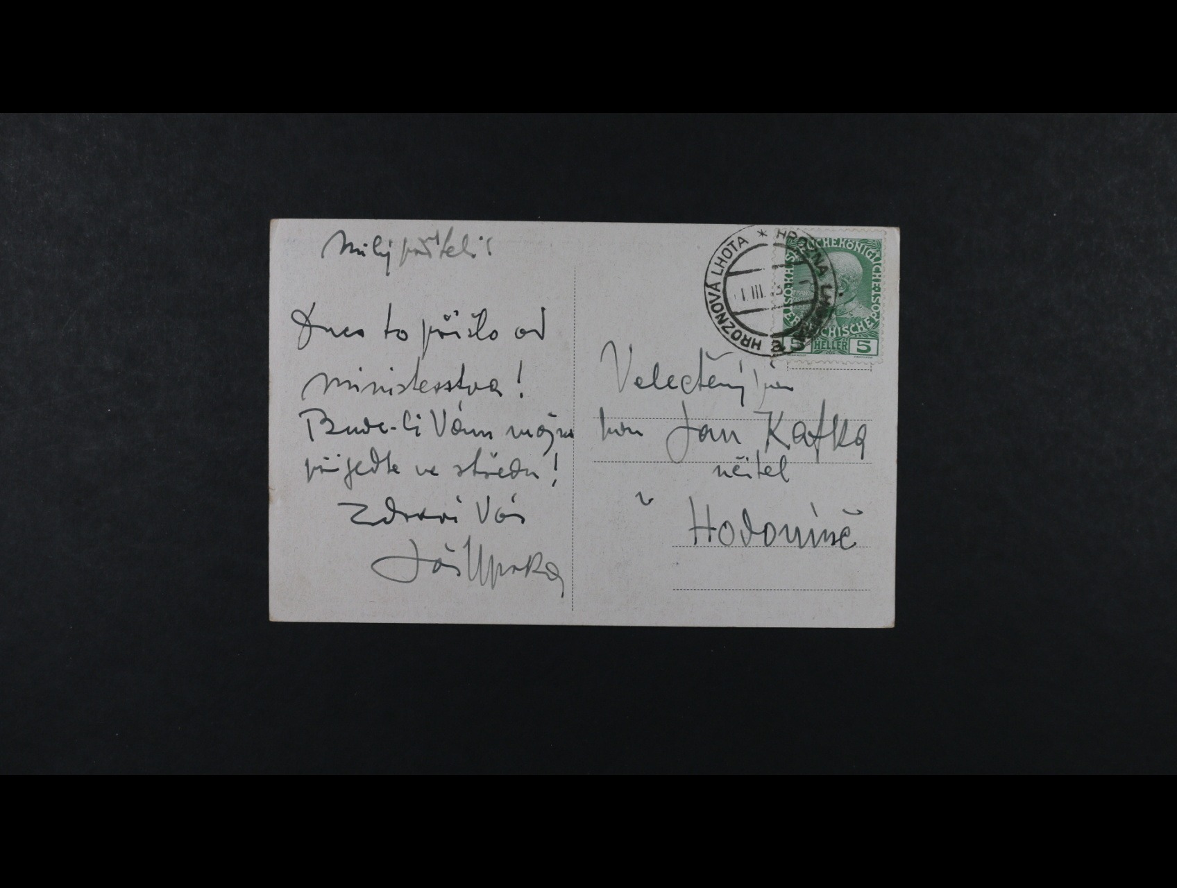 Uprka Joža 1861 - 1940, moravský malíř a grafik - vlastnoručně psaná pohlednice z r. 1913 s podpisem