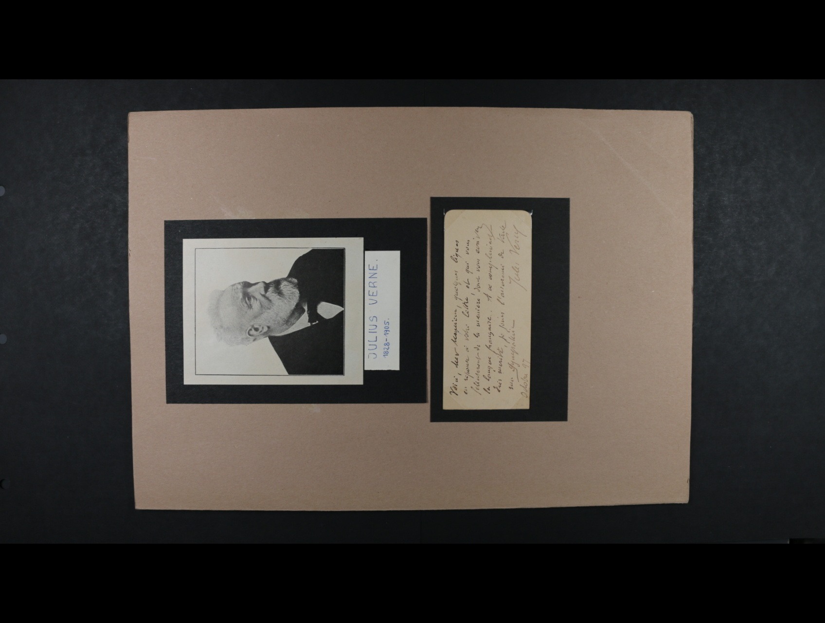 Verne Julius 1825 - 1905, význačný franc. spisovatel dobrodružné literatury - vlastnoručně psaný lístek s podpisem z r. 1897