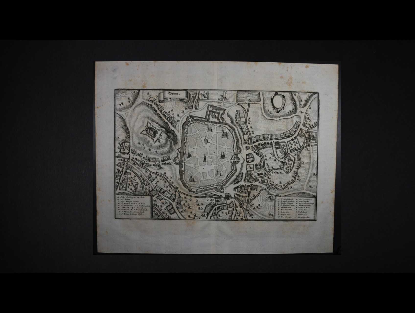 Brno - historická rytina mapy Brna z počátku 19tého stol., rozm. 215 x 320 mm