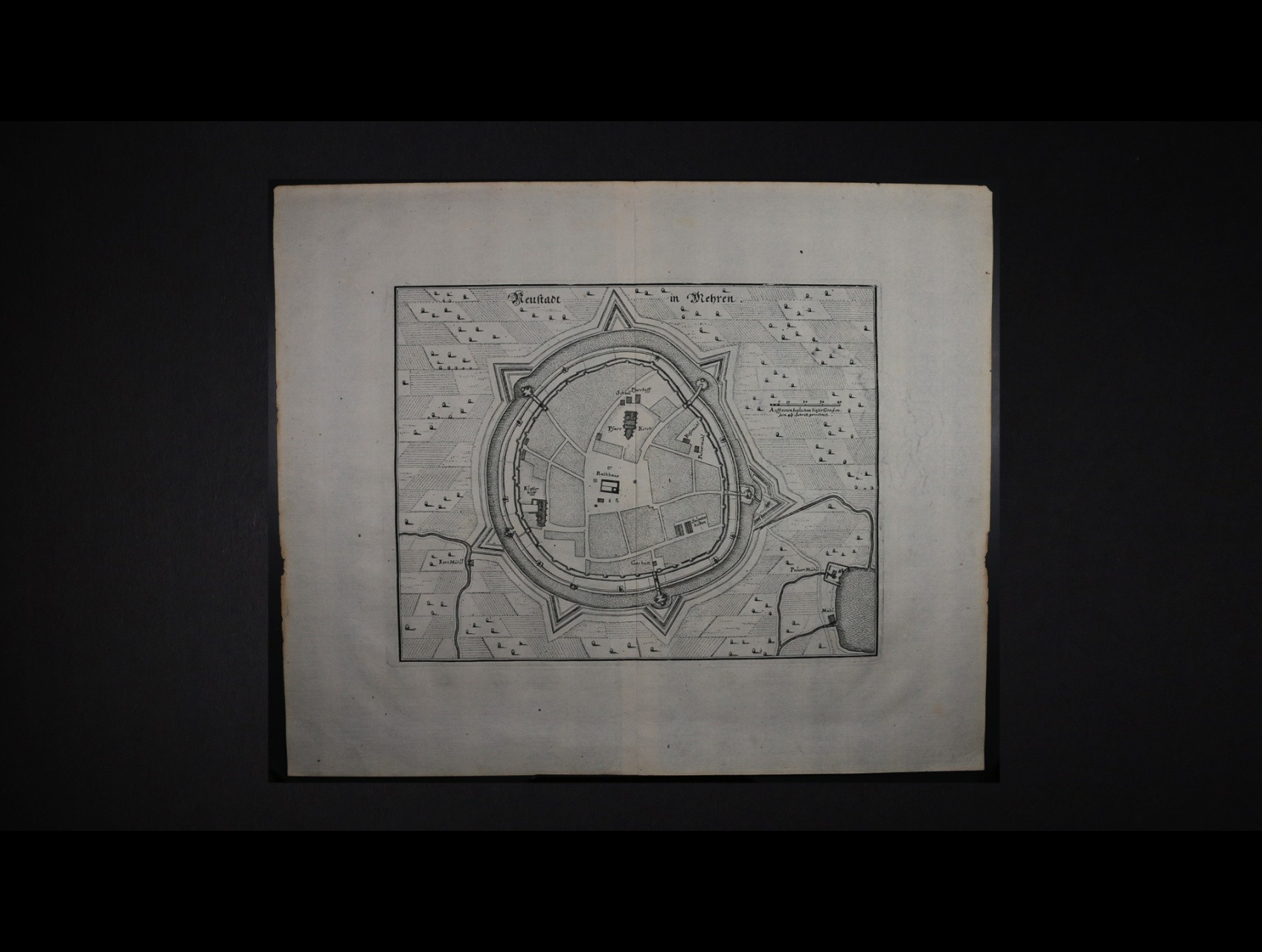 Nové Město na Mor. - rytina mapy půdorysu Nového Města z počátku 19tého stol. o rozm. 195 x 250 mm