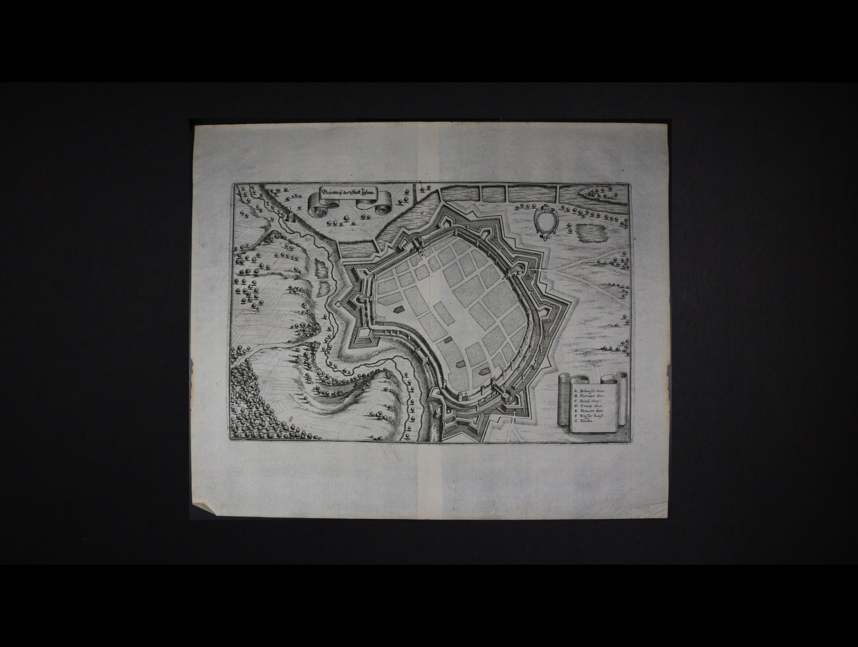 Jihlava - rytina mapy půdorysu města Jihlavy z počátku 19tého stol. o rozm. 245 x 320 mm