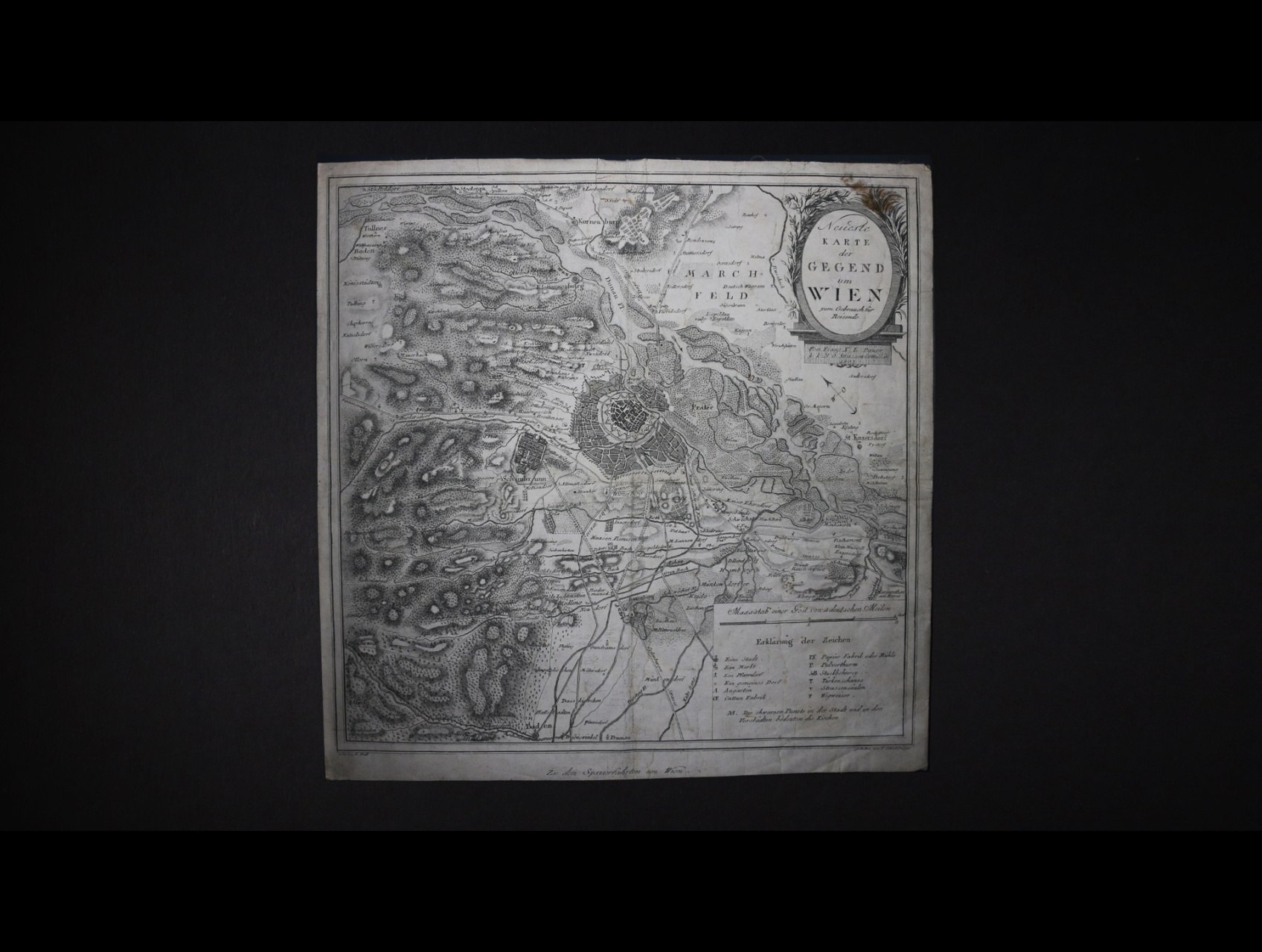 Wien - rytina mapy města Vídně z r. 1803 o rozm. 297 x 290 mm