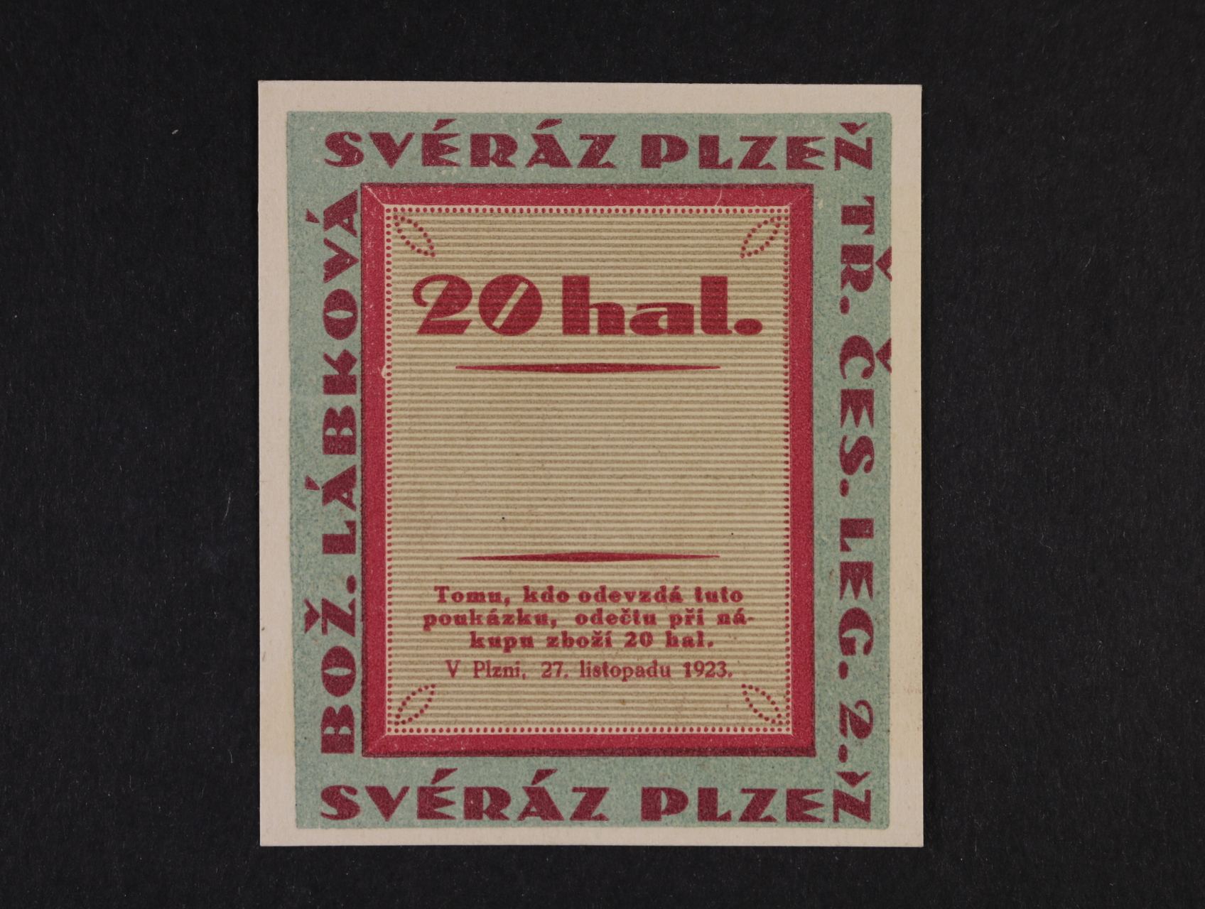 Plzeň, 20 h 27.11.1923, Bož. Lábková, Svéráz, D.H. 160.5.1d