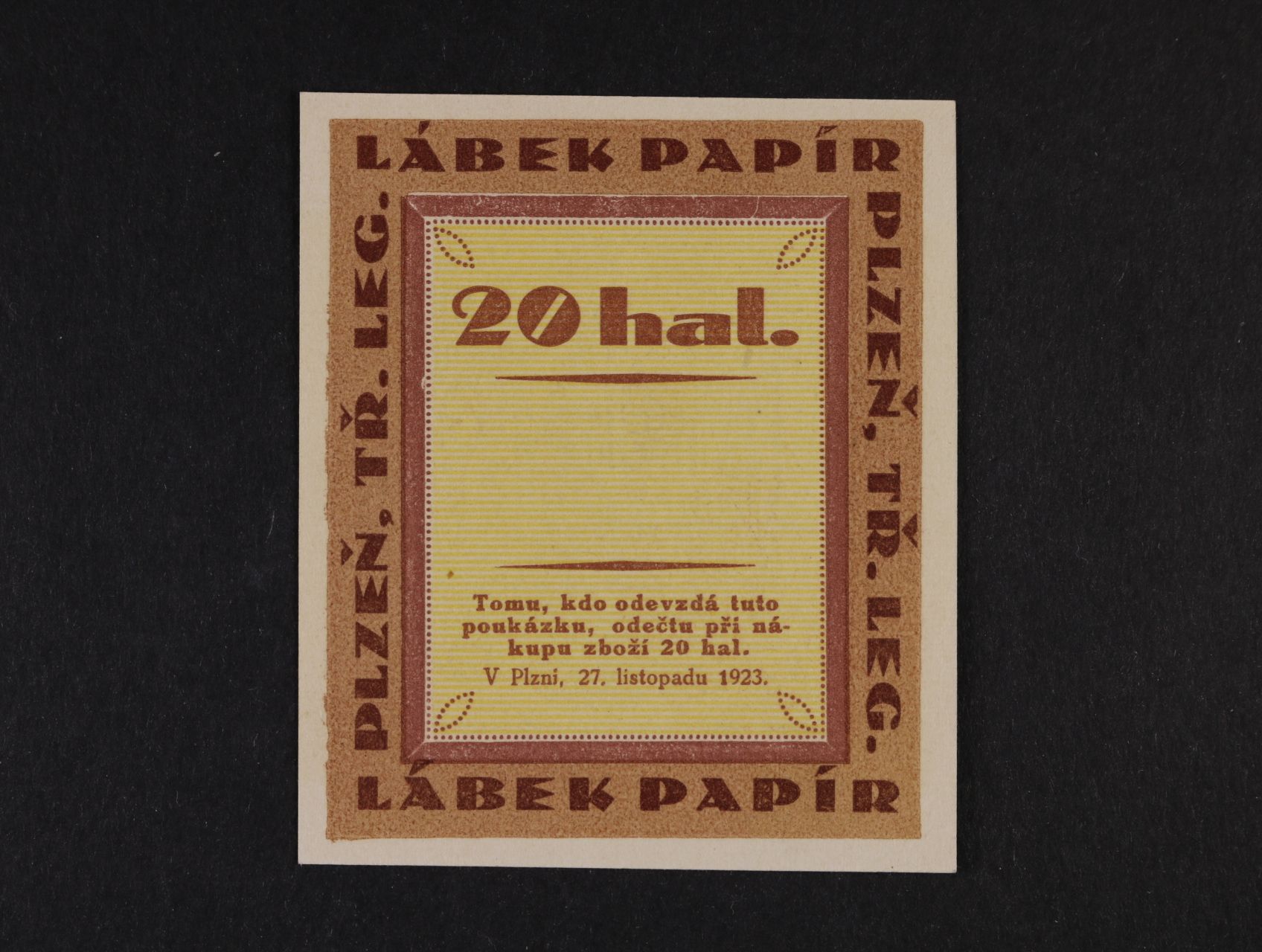 Plzeň, 20 h 27.11.1923, Ladislav Lábek, Papír, D.H. 160.6.1c