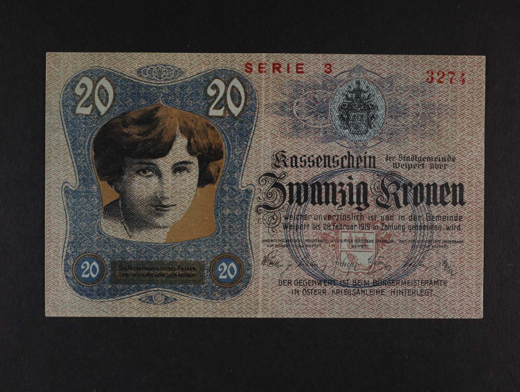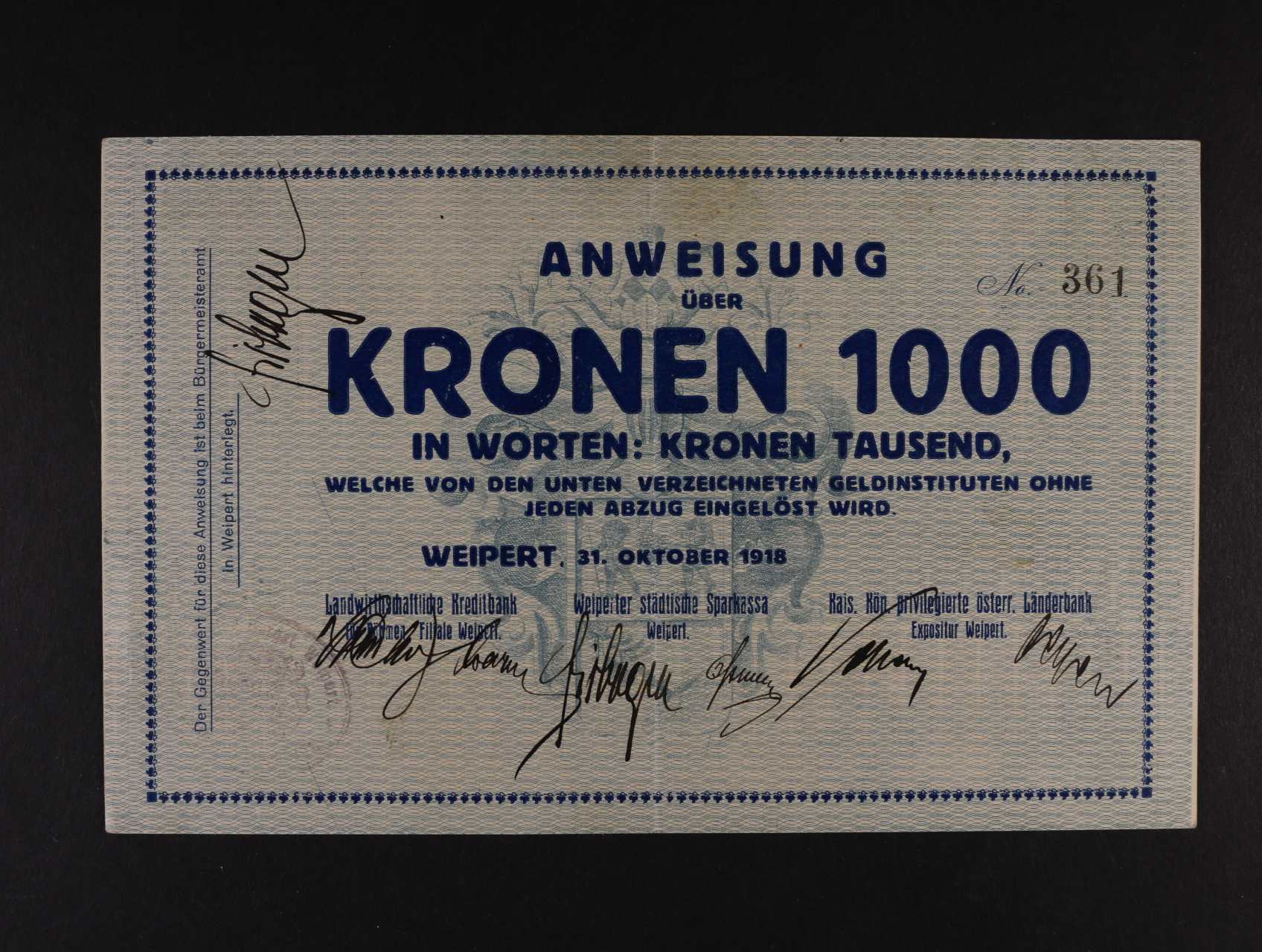 Weipert (Vejprty), 1000 K 30.10.1918 město, D.H. 233.5a