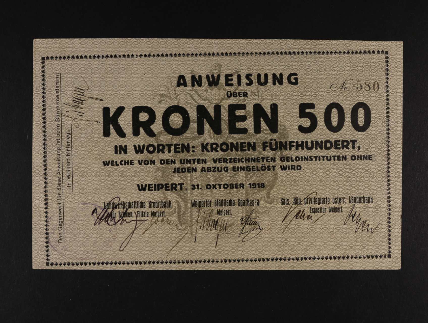 Weipert (Vejprty), 500 K 30.10.1918 město, D.H. 233.4