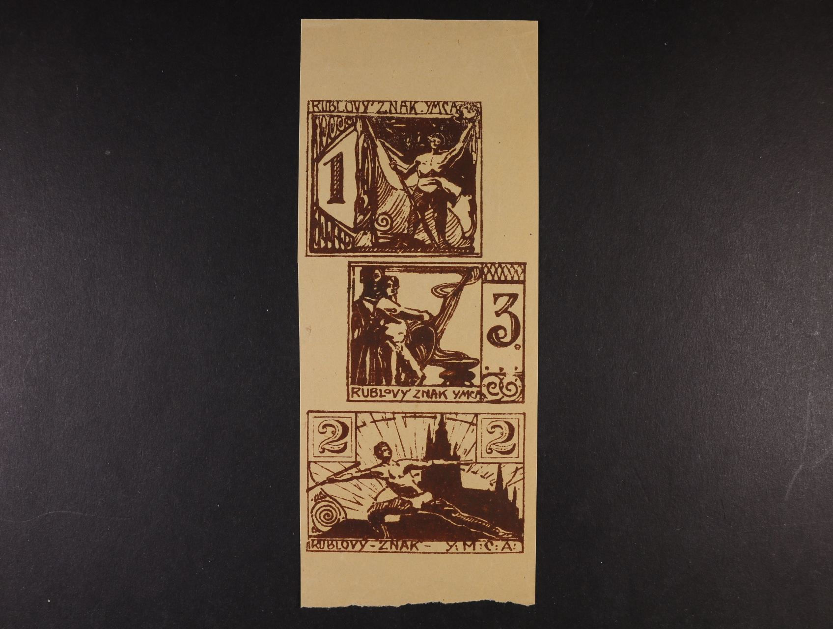 Čs. legie v Rusku, YMCA, 1, 2, 3 Rubl - b.d., hnědý tisk, kompletní tiskový arch, velmi vzácný R!