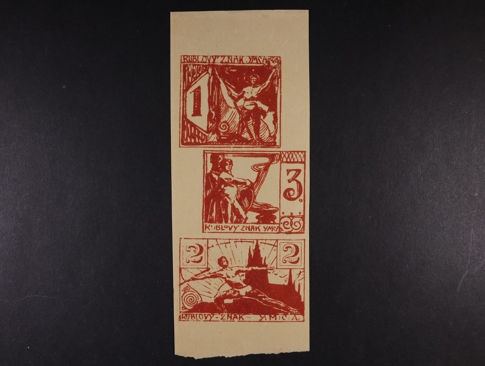Čs. legie v Rusku, YMCA, 1, 2, 3 Rubl - b.d., červenohnědý tisk, kompletní tiskový arch, velmi vzácný R!