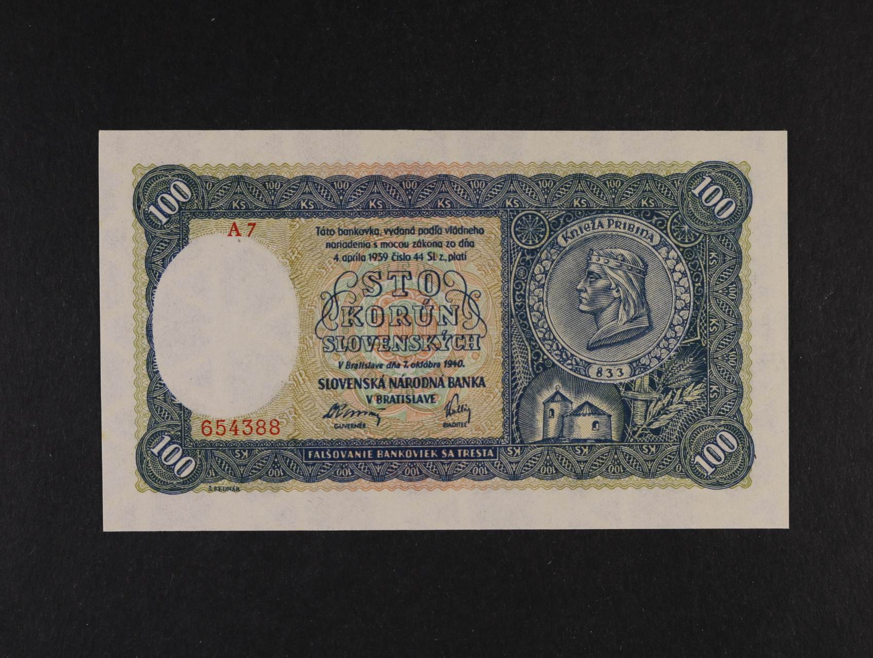 100 Ks 7.10.1940 série A 7 II.vydání, Ba. 49a, Pi. 11a