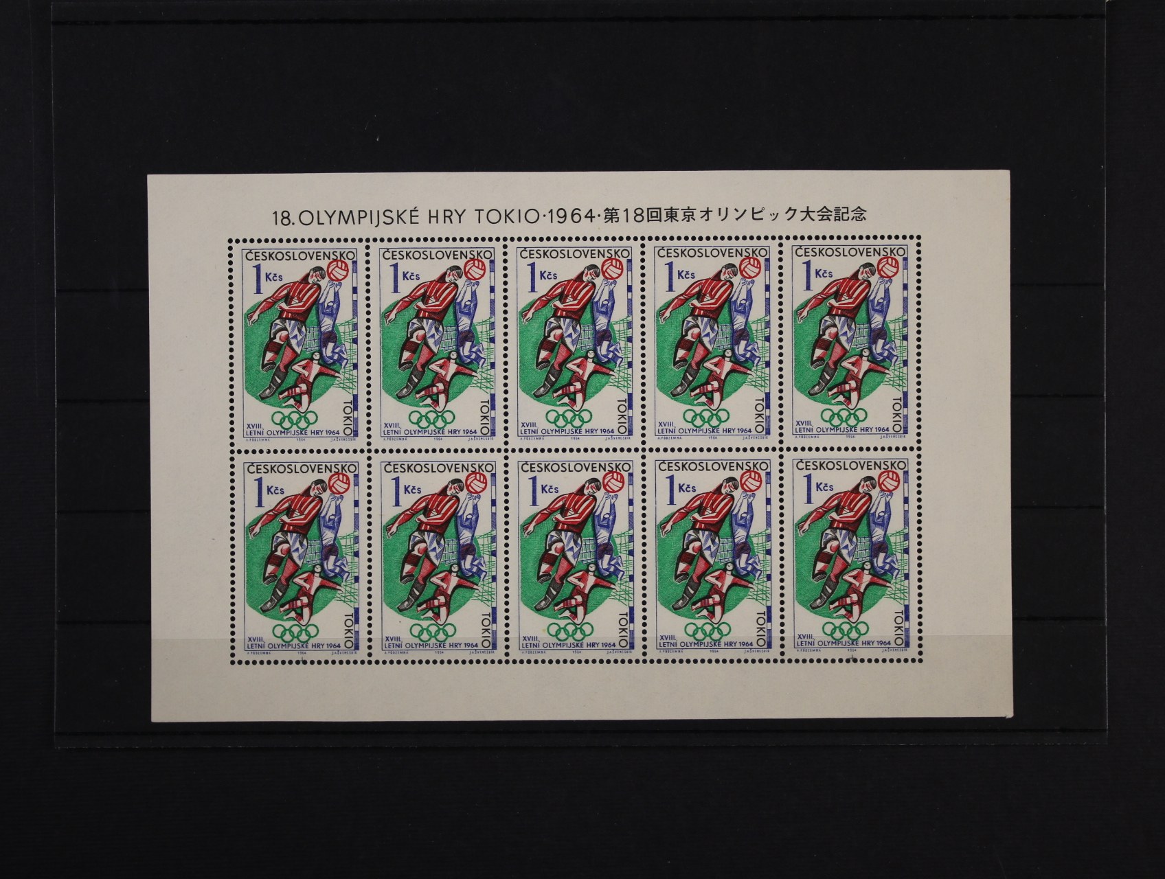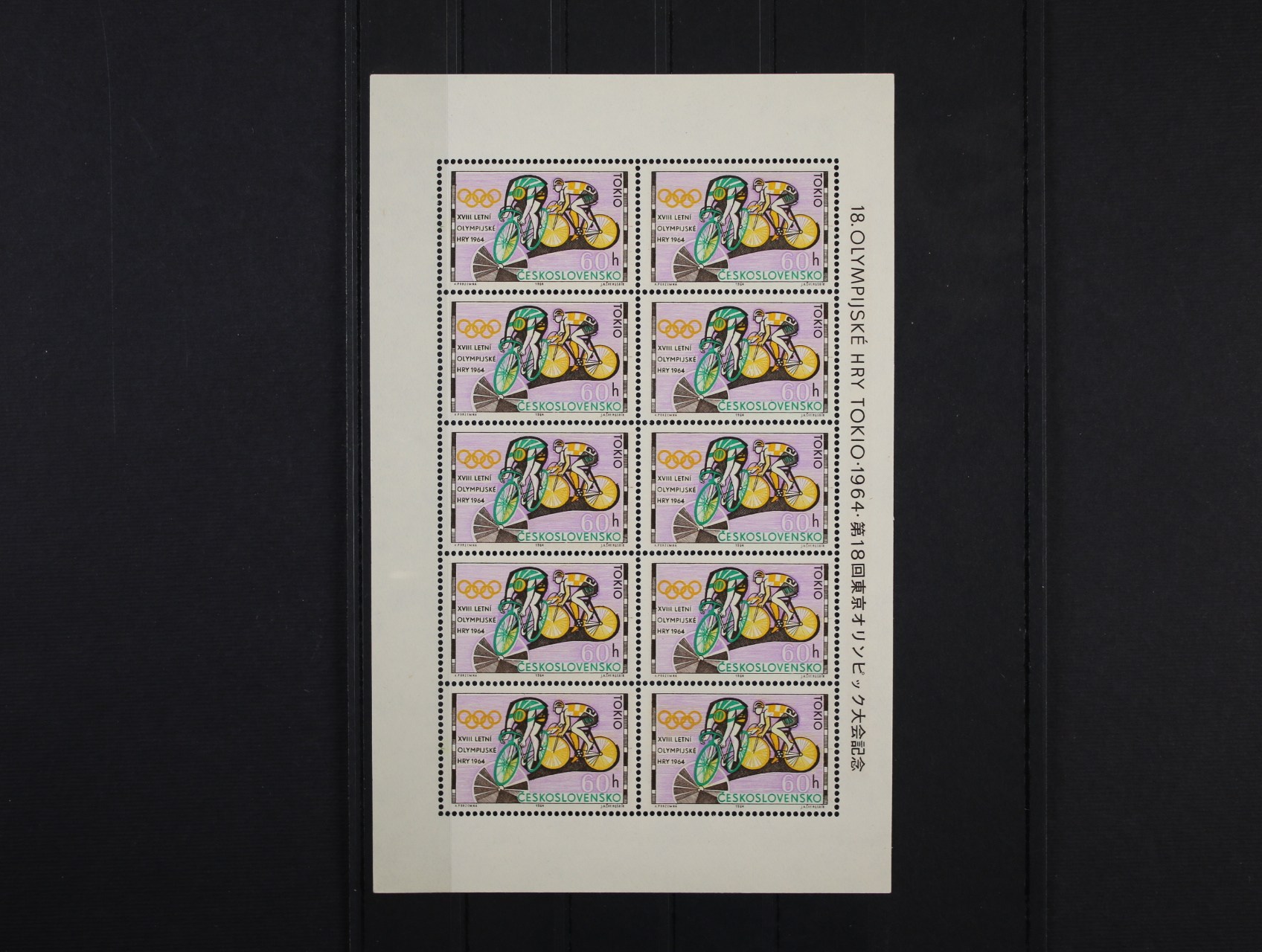 PL č. 1396, XVIII. OH Tokio 1964, lehký otisk prstu na pravém horním rohu okraje, deska A, nápis nahoře