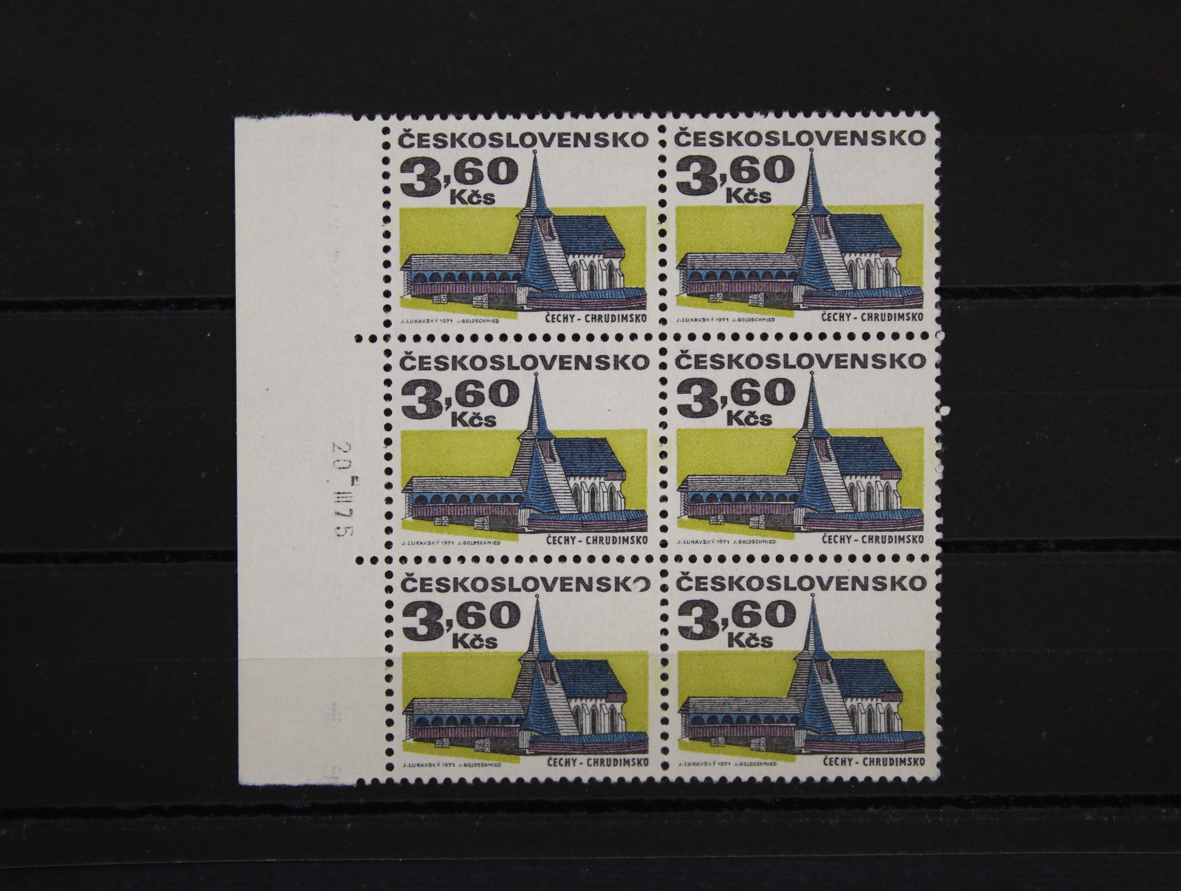 zn. č. 1879 xb, levý krajní 6ti blok s datem tisku