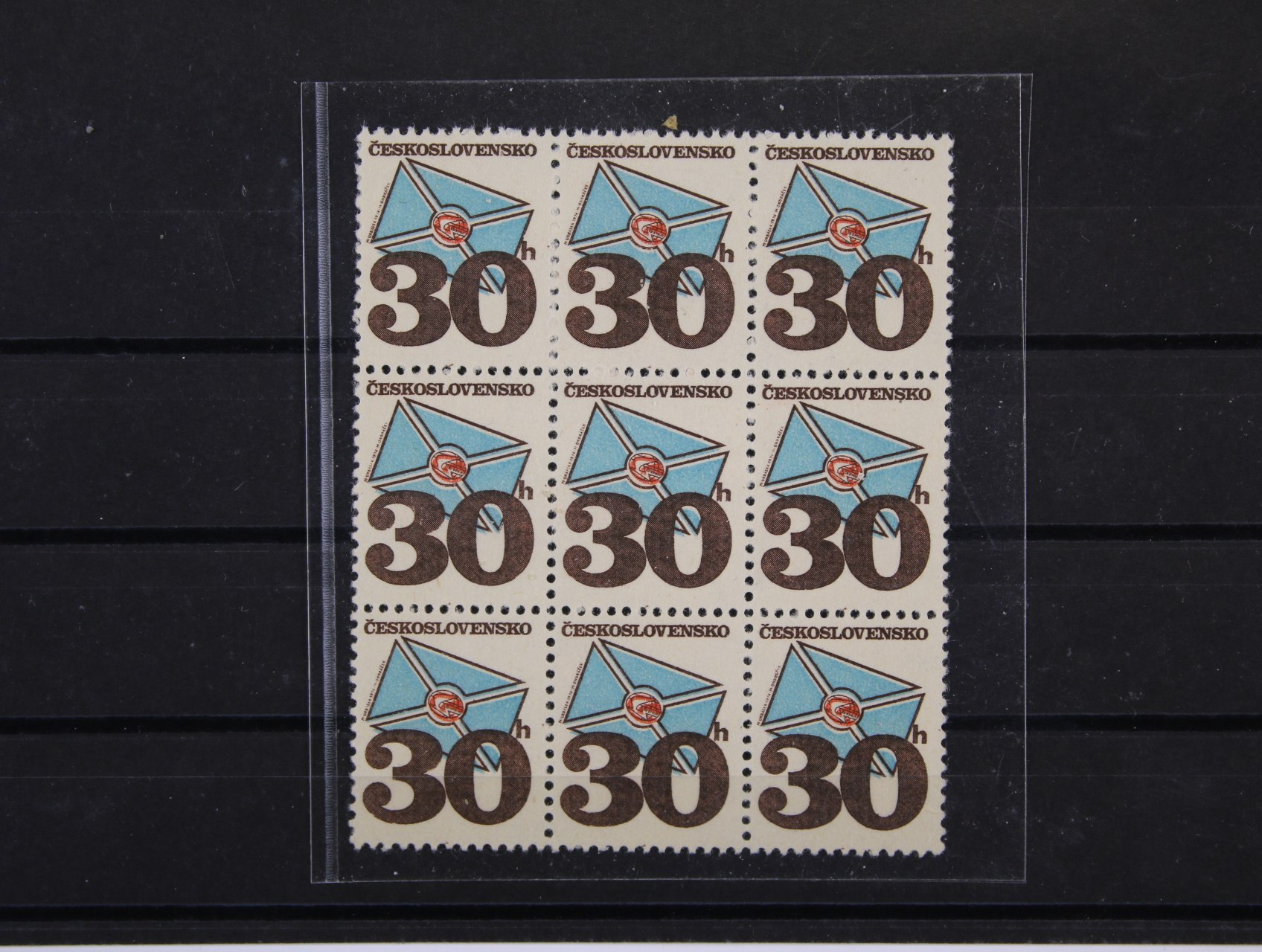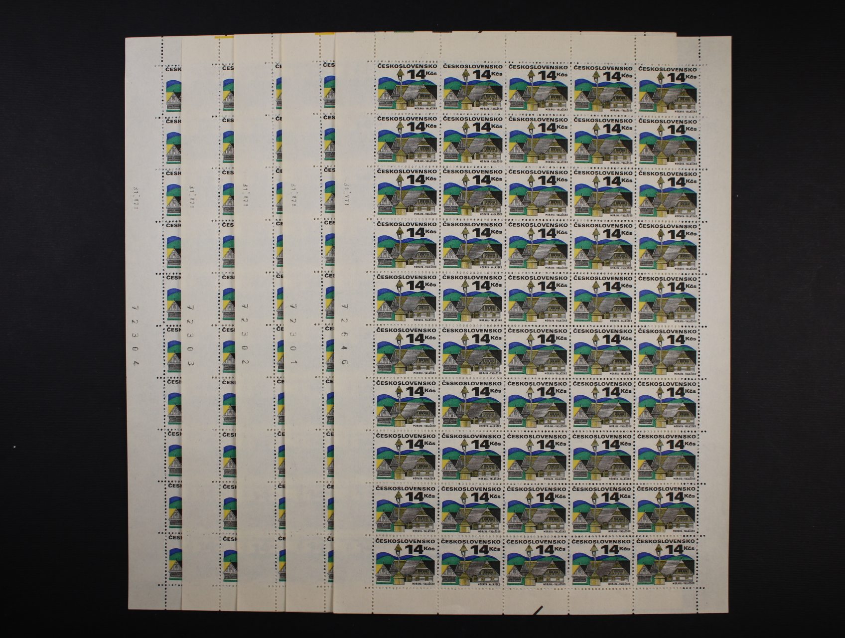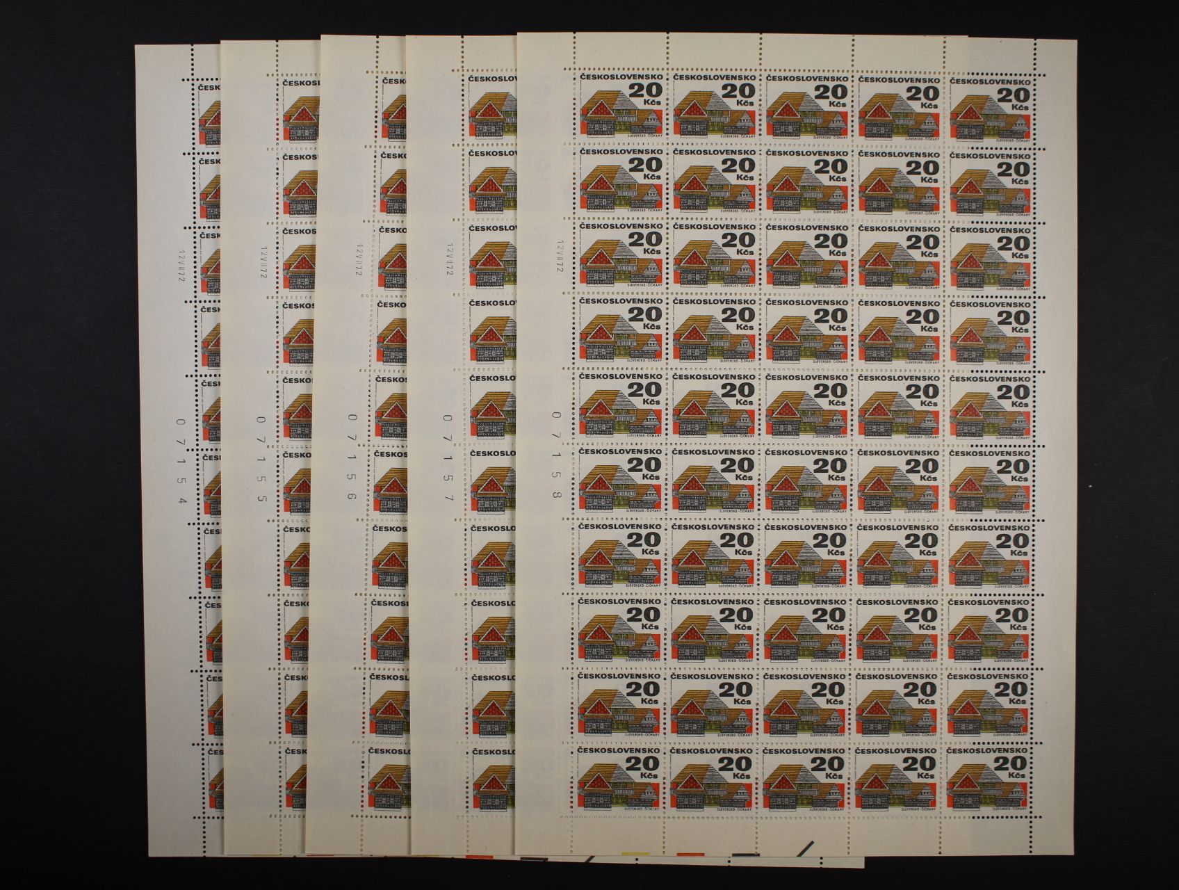 zn. č. 1967 v kompl. 50ti-kusovém archu s datem tisku (5x), kat. cena 6250 Kč