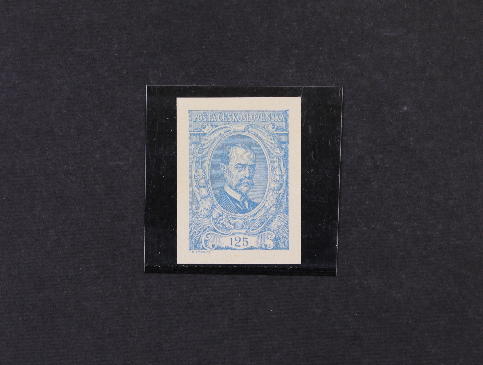zn. č. 140a ultramarin typ II, 125h TGM ultramarin, v pravém horním rohu pod písmeny SK nepatrně zeslabený papír